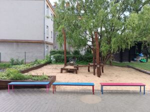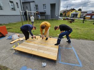 – Výroba relaxačních prvků – dřevěné terasy, dřevěné lavičky. Renovace starých laviček určených k likvidaci