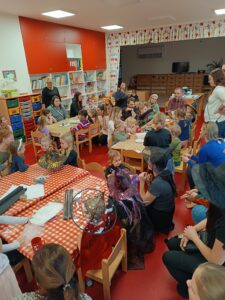Ve středu 5. listopadu 2025 si děti užily dramatizaci pohádky Kouzelná čarodějnice, po níž následoval kreativní workshop s rodiči. Poté jsme se všichni vydali na lampionový průvod, kde děti zatančily a zazpívaly, za což si vysloužily sladkou odměnu.