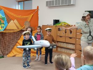 V pátek 7.11.2025 nás svou návštěvou potěšilo divadlo Letadlo s programem Průzkumníci v Africe. Děti se báječně pobavily a zároveň se dozvěděly něco nového o zvířatech v Africe.