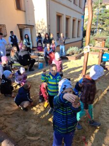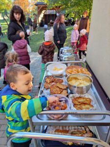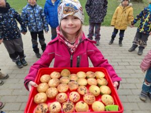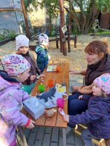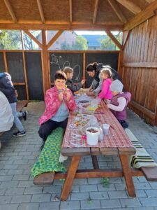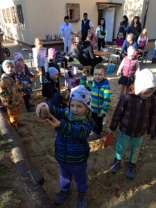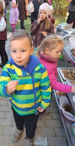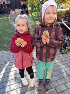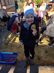 „Bramboriáda“ v MŠ, kterou jsme pořádali ve spolupráci rodičů a dětí dne 16.10.2024 byla plná zábavných aktivit. Zatím co rodiče soutěžili, kdo nejrychleji oškrábe brambory, děti si mohly vyzkoušet různé disciplíny zaměřené na rychlost a obratnost. Velkou výzvou byla i kreativní výroba panáčka z brambor. Odměnou pro děti bylo lízátko ve tvaru brombůrky. Rodiče se zapojili do tradičního, ale i nezvyklého pohoštění z brambor, a MŠ zajistila pitný režim. Celá akce byla úspěšná a přinesla radost dětem i dospělým.