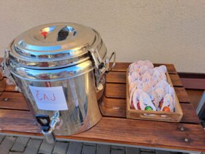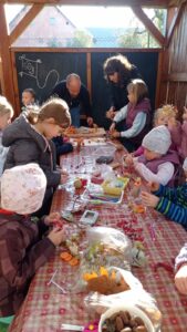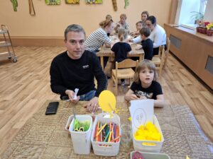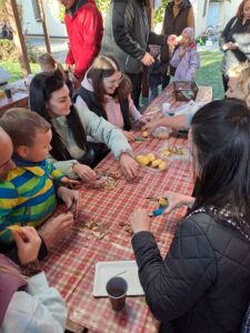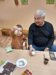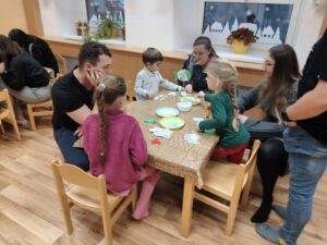 Akci svou přítomností podpořil pan starosta, který se aktivně zapojil do tvoření. Pro všechny účastníky bylo připraveno chutné občerstvení – paní učitelky napekly buchty, které jsme podávali s kávou a čajem. Atmosféra byla plná pohody, smíchu a vzájemného sdílení, což jen podtrhlo kouzlo blížících se Vánoc.