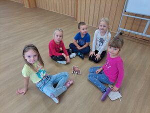Dnes 14.10.2025 jsme s dětmi navštívili místní knihovnu, kde proběhla krásná akce s názvem „Podzim“. Paní knihovnice pro nás připravily zajímavé představení příběhu dvou chlapců, kteří na podzim pouštějí draky. Příběh děti zaujal a ukázal jim, jak si užít podzimní dny plné barev a zábavy.