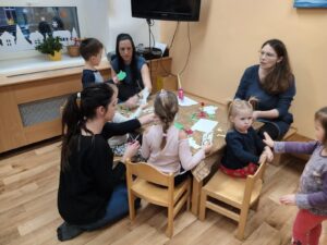 V dopoledních hodinách jsme v naší mateřské škole uspořádali krásnou akci, která spojila děti, seniory a místní komunitu – společné vyrábění vánočních ozdob. Pod vedením paní učitelek se tvořily ozdobné baňky dekorované třpytkami, což přineslo radost nejen dětem, ale i našim seniorům.
