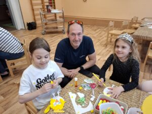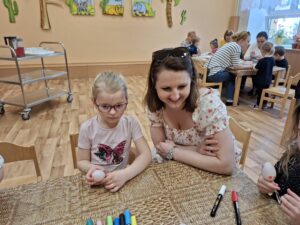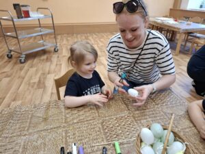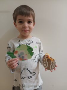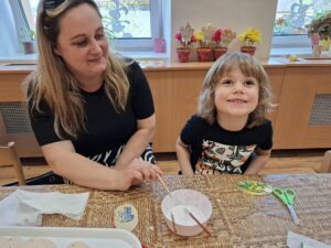 Dnes na modré pondělí jsme si s dětmi užili tvořivé dopoledne plné jarní nálady. Každý si vyrobil svého vlastního zajíčka z recyklovatelného kelímku od kávy, přilepili jsme ouška, očička, čumáček i ocásek. Ale tím to neskončilo. Do kelímku jsme zasadili ovesné zrní, které v následujících dnech vyklíčí a promění se v zelený porost. Až zrní vyroste, děti si svého zajíčka odnesou domů v podobě jarního květináčku, který jim bude dělat radost a připomínat společně strávený čas.