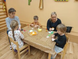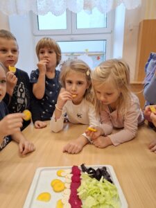 Během setkání jsme si povídali o charakteristických vlastnostech podzimu, například o tom, jak se mění barvy listí a jaké plody v tomto období dozrávají. Děti také přiřazovaly jednotlivé listy k odpovídajícím plodům, což bylo nejen zábavné, ale také poučné.