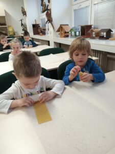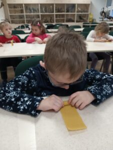 V úterý 11.2.2025 jsme s dětmi předškolní třídy navštívili knihovnu ve Svinově, kde byl připraven výukový program zaměřený na předčtenářskou gramotnost s názvem „Zubr si hledá hnízdo“. Děti se v rámci besedy seznámily s netradiční výtvarnou technikou roztírání plastelíny na papír. Na závěr si děti mohly prohlédnout knihy s dětskou tématikou.
