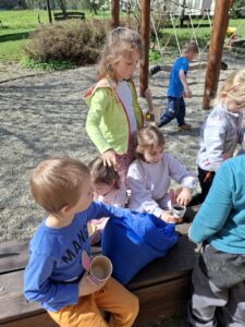 V rámci tématu „Pohádková louka“ jsme využili krásného počasí a s dětmi probudili květinový záhonek . Děti se zábavnou formou učily poznávat a pojmenovávat první jarní květiny a jejich části.