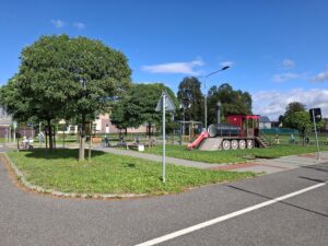 Ale návštěva dopravního hřiště nebyla jen o učení. Po náročném tréninku si děti mohly odpočinout a vyřádit na tematických herních prvcích autobus a vláček.