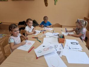 Součástí oslav byl i jeden speciální dárek paní majitelce. Děti společně nakreslily veselé panáčky, kteří budou vystavení ve vstupní hale jako symbolické poděkování paní majitelce Fun Golfu za nezapomenutelný den, který dětem přichystala.