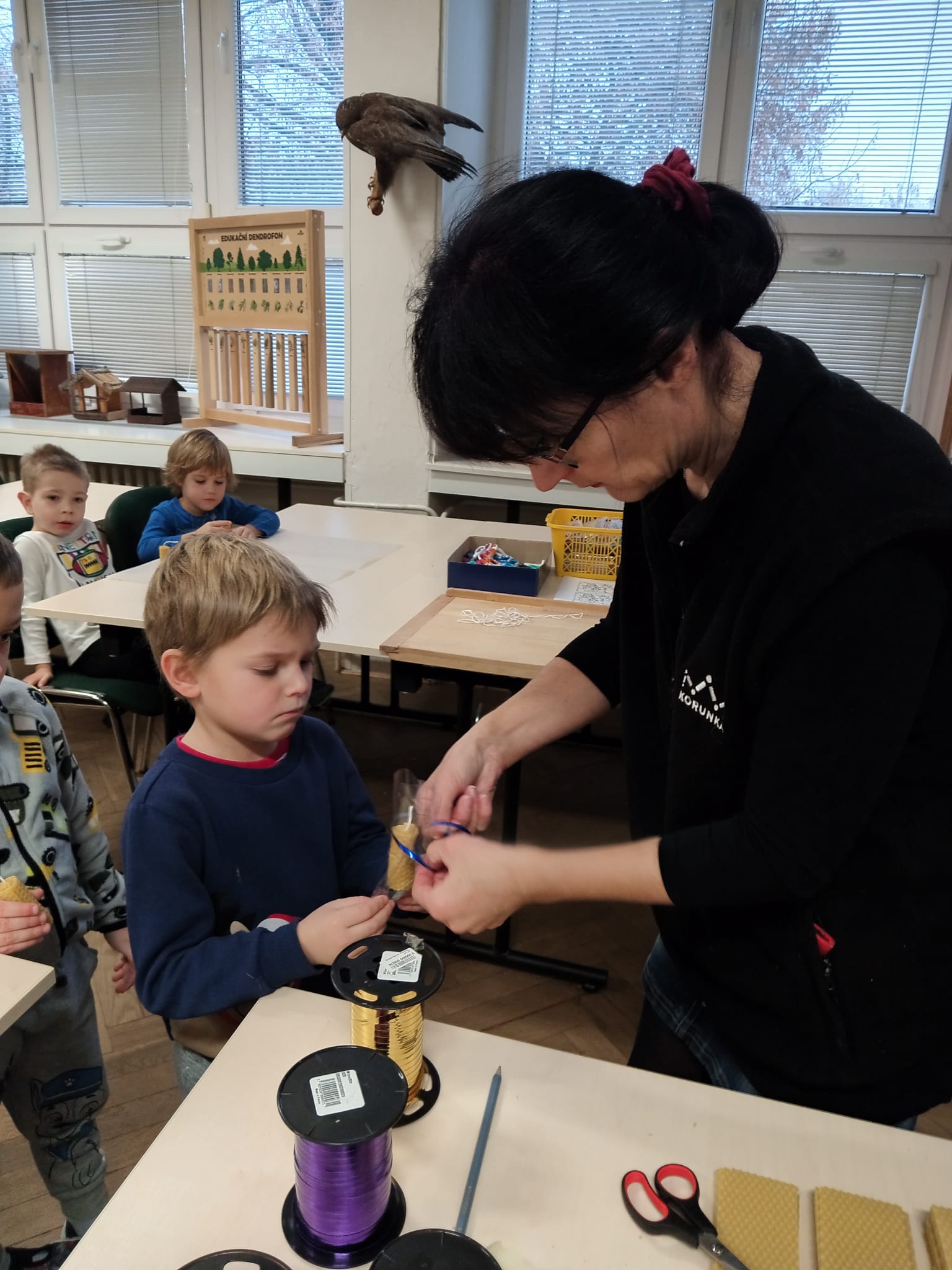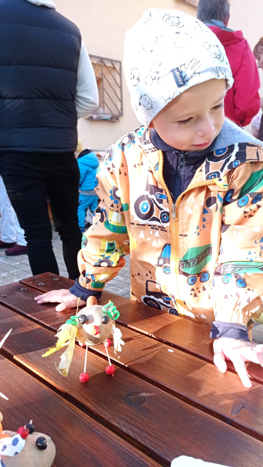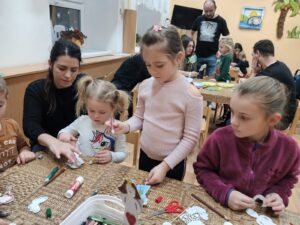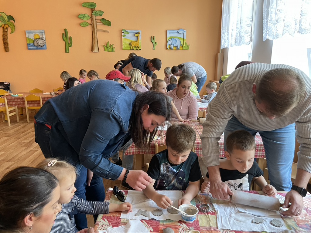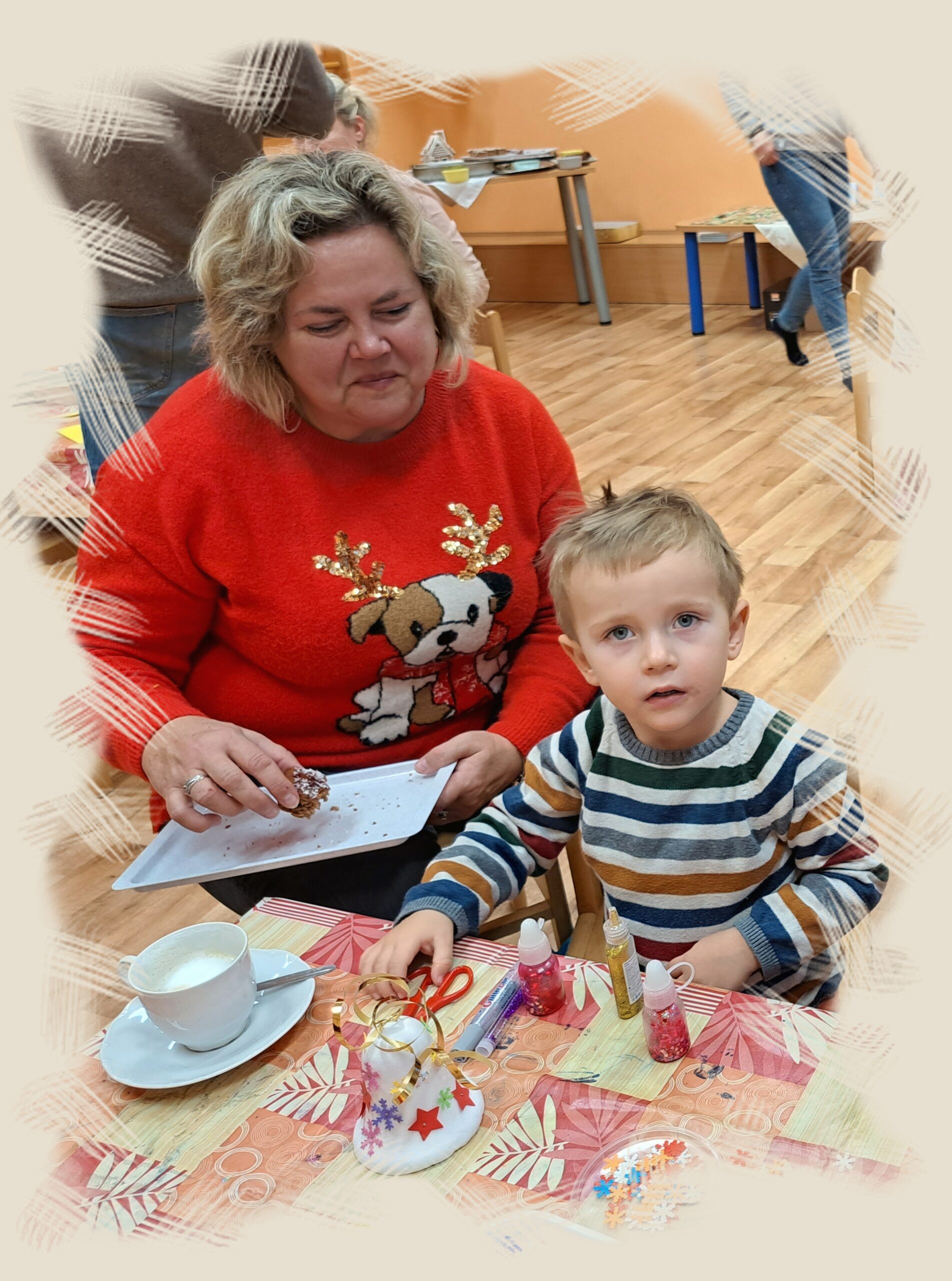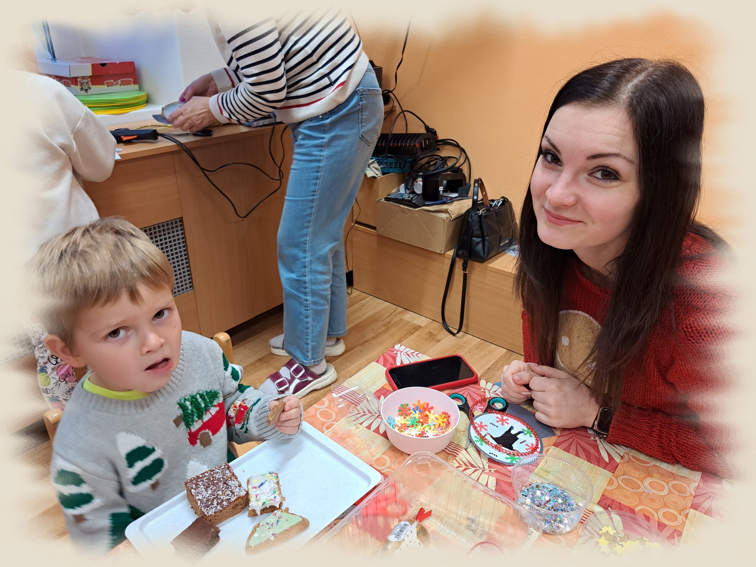 Akci svou přítomností podpořil pan starosta, který se aktivně zapojil do tvoření. Pro všechny účastníky bylo připraveno chutné občerstvení – paní učitelky napekly buchty, které jsme podávali s kávou a čajem. Atmosféra byla plná pohody, smíchu a vzájemného sdílení, což jen podtrhlo kouzlo blížících se Vánoc.