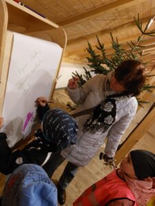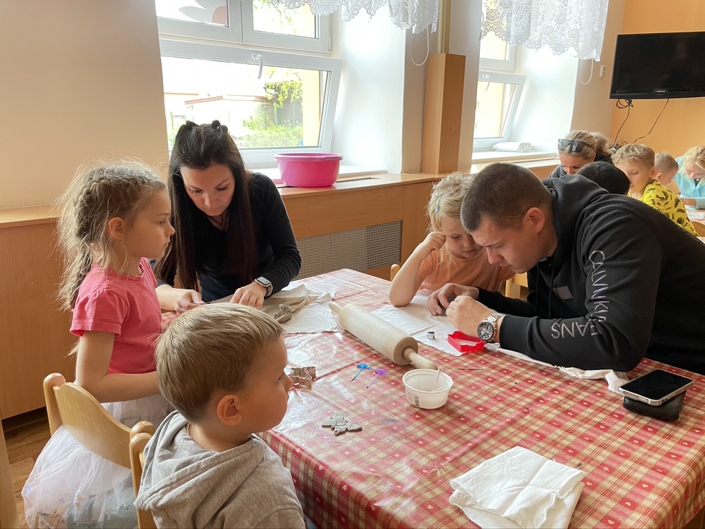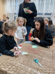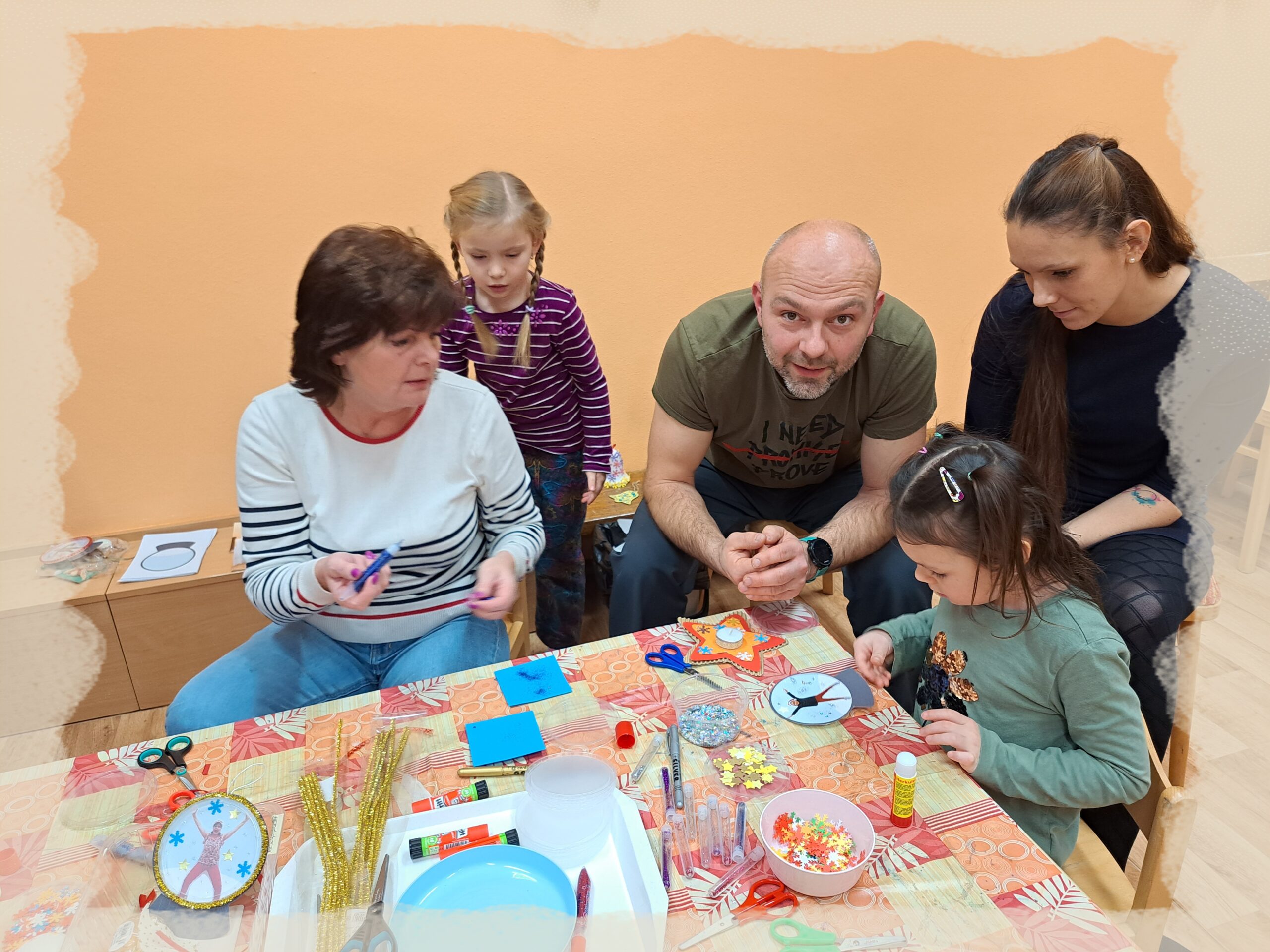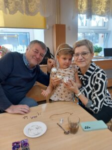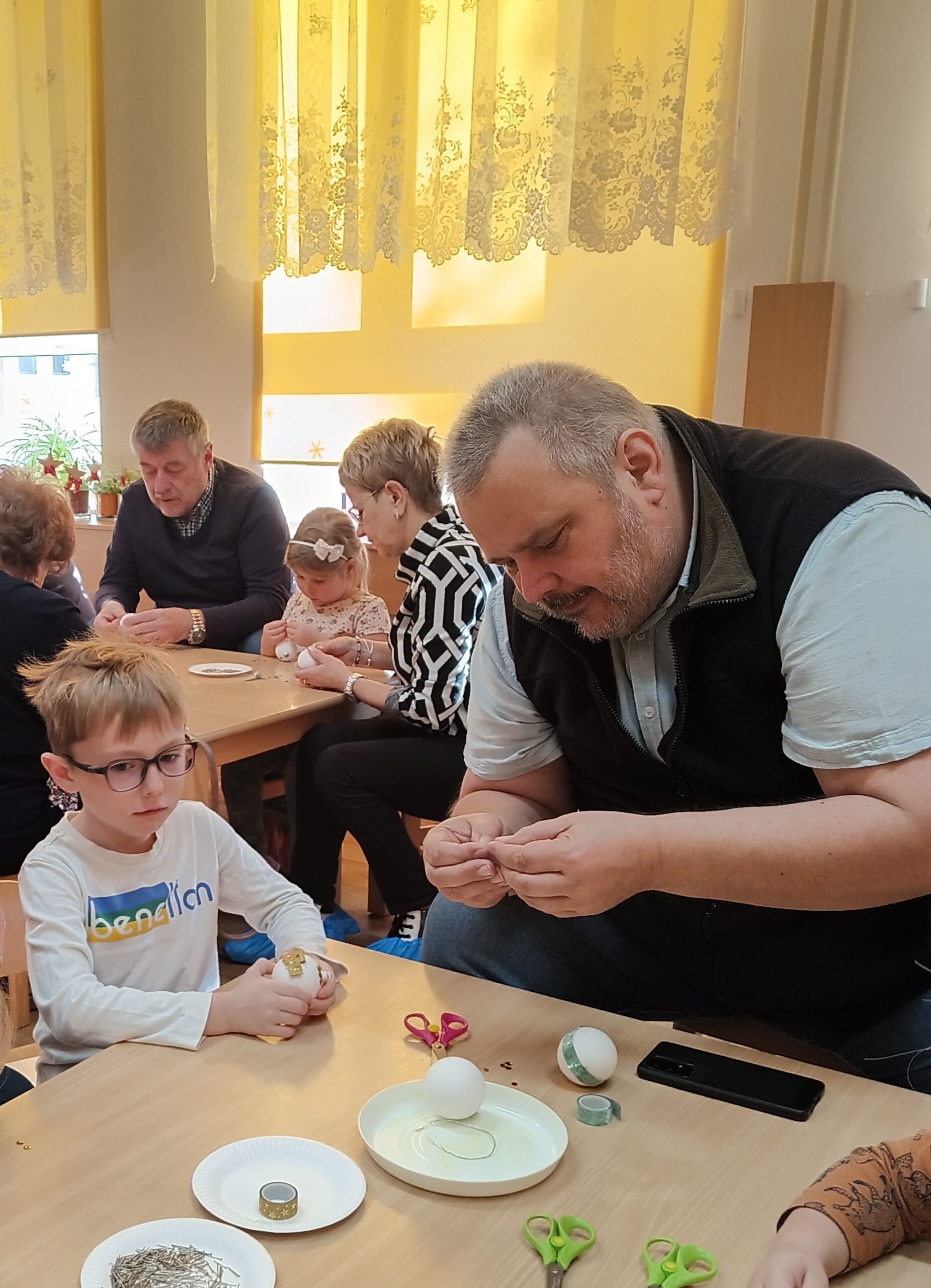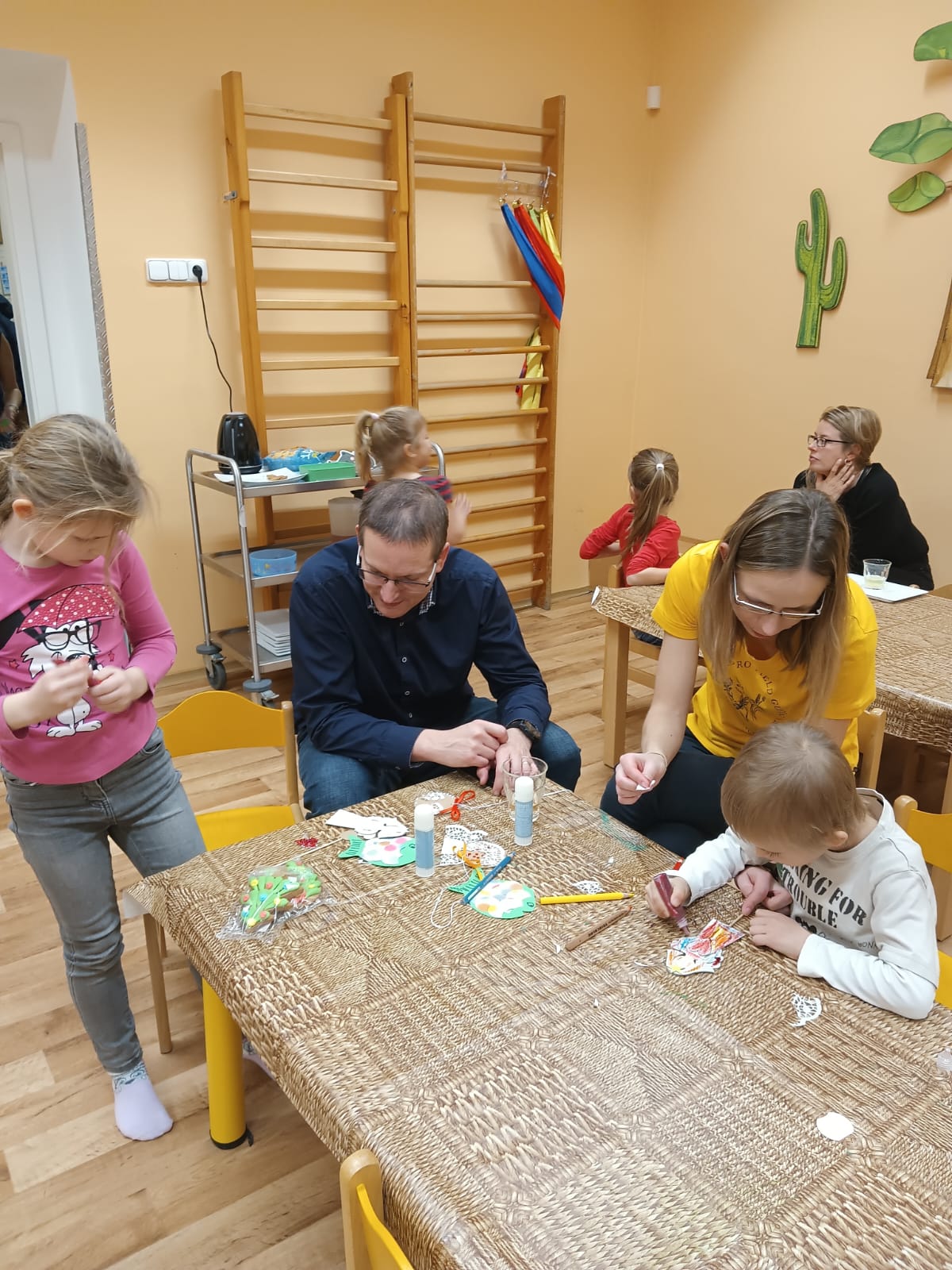 Akci svou přítomností podpořil pan starosta, který se aktivně zapojil do tvoření. Pro všechny účastníky bylo připraveno chutné občerstvení – paní učitelky napekly buchty, které jsme podávali s kávou a čajem. Atmosféra byla plná pohody, smíchu a vzájemného sdílení, což jen podtrhlo kouzlo blížících se Vánoc.