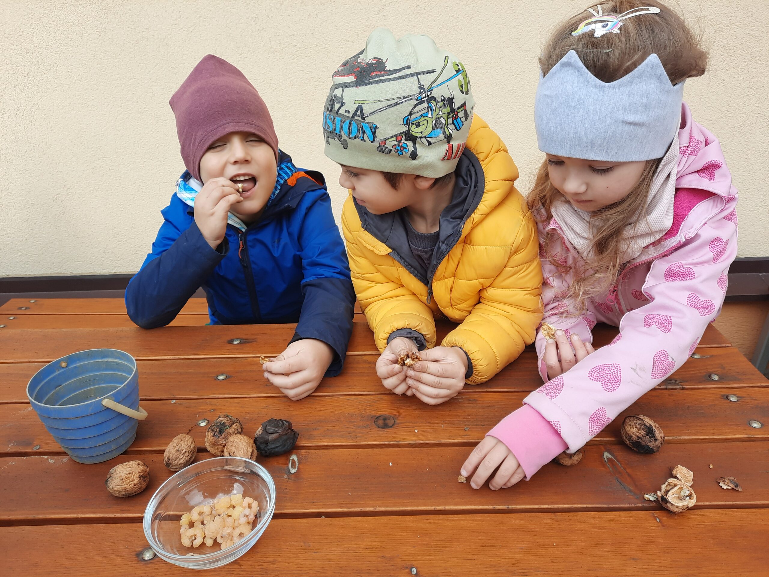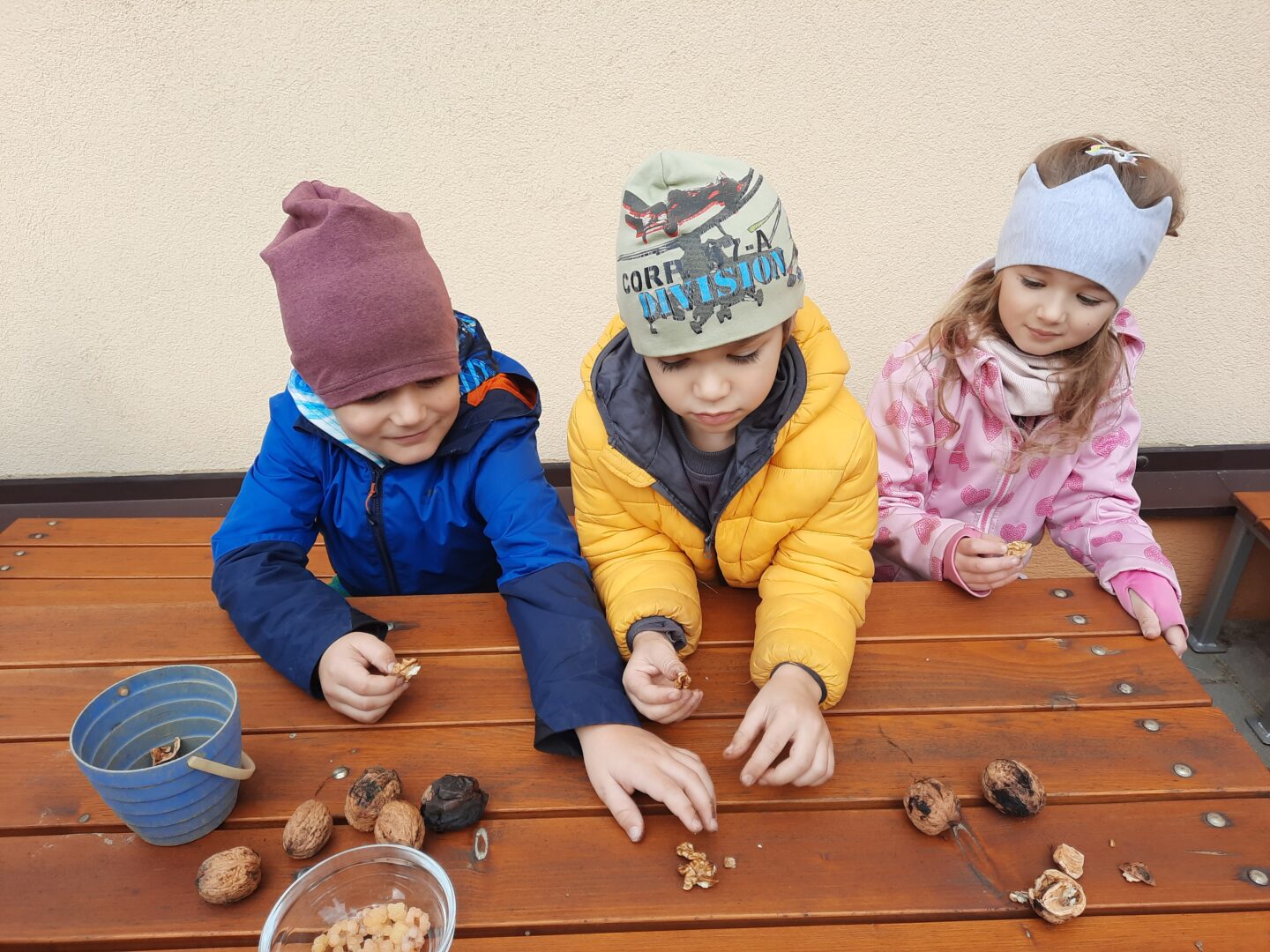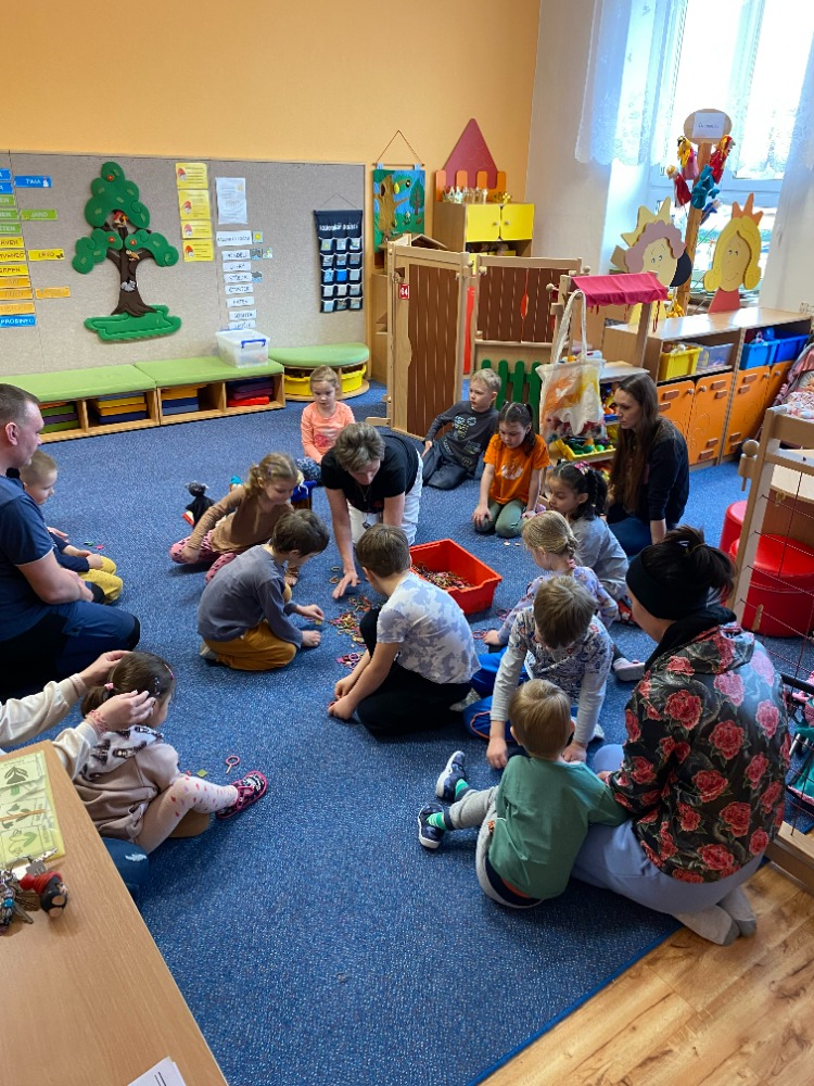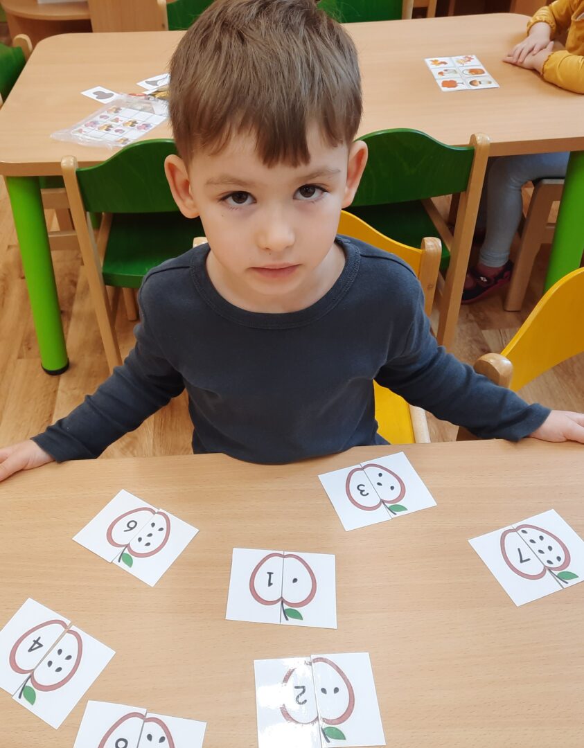 Během setkání jsme si povídali o charakteristických vlastnostech podzimu, například o tom, jak se mění barvy listí a jaké plody v tomto období dozrávají. Děti také přiřazovaly jednotlivé listy k odpovídajícím plodům, což bylo nejen zábavné, ale také poučné.