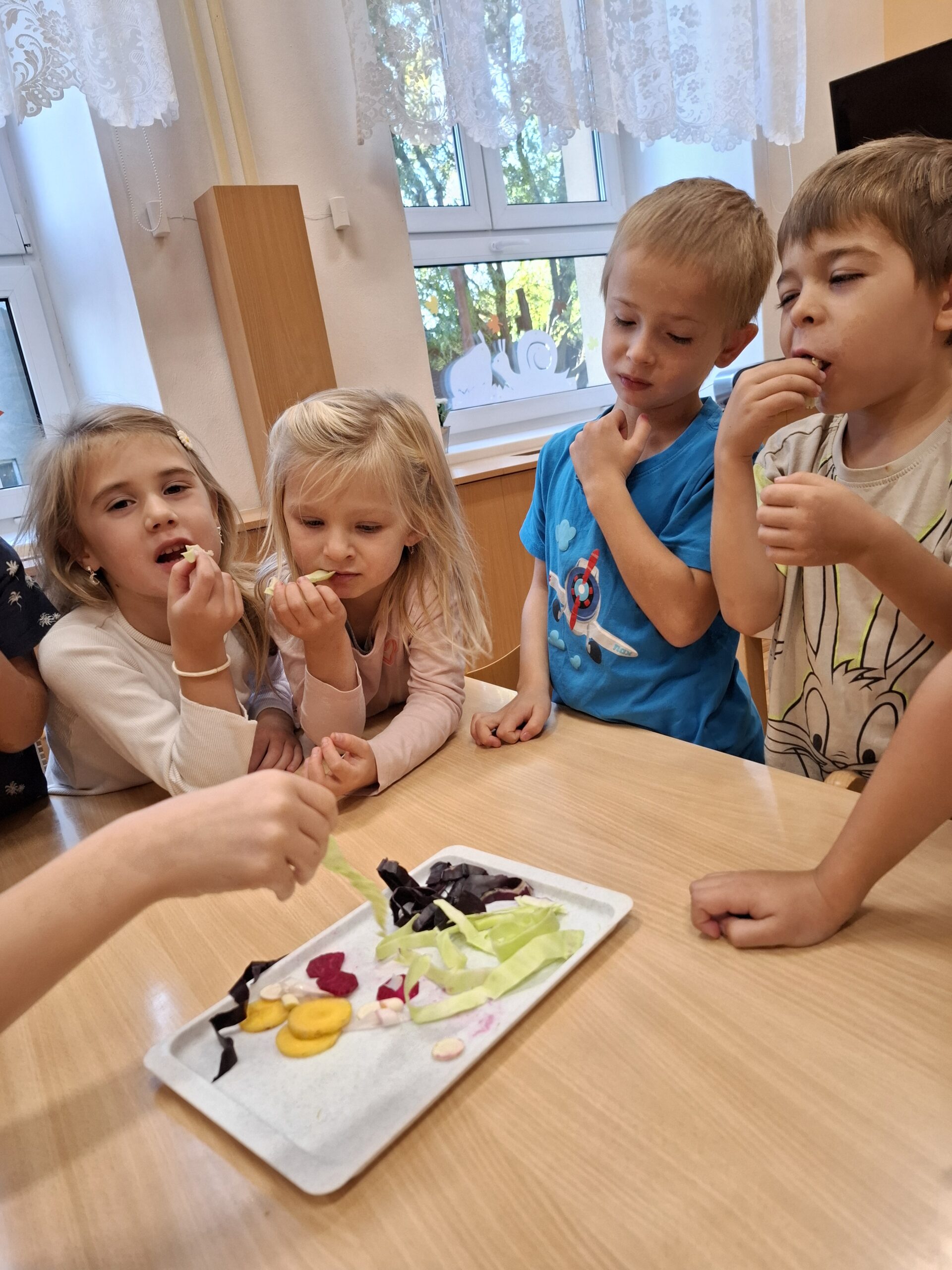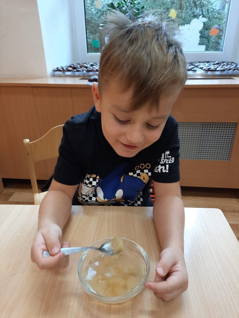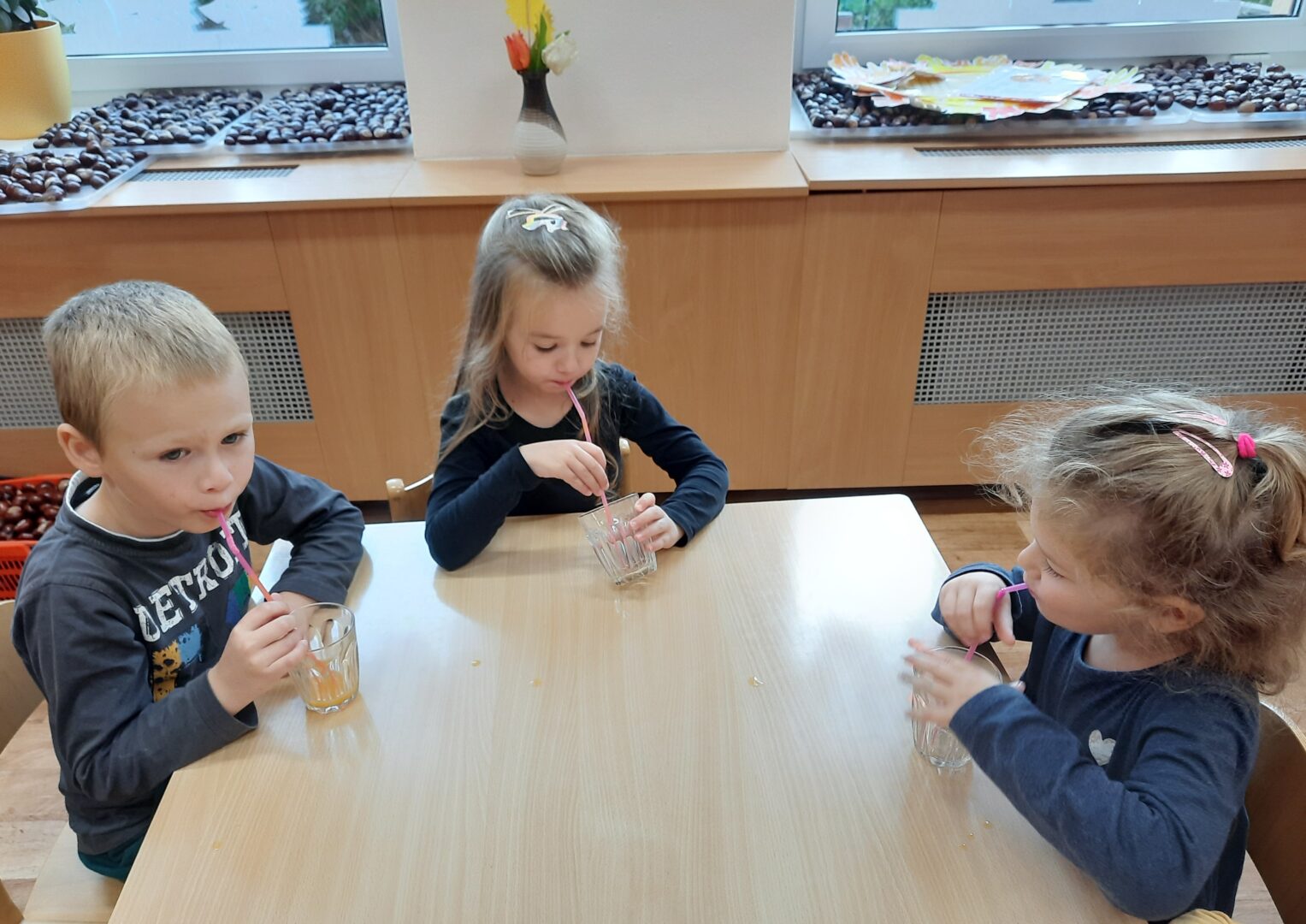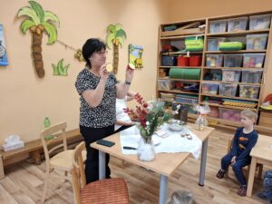 Během setkání jsme si povídali o charakteristických vlastnostech podzimu, například o tom, jak se mění barvy listí a jaké plody v tomto období dozrávají. Děti také přiřazovaly jednotlivé listy k odpovídajícím plodům, což bylo nejen zábavné, ale také poučné.