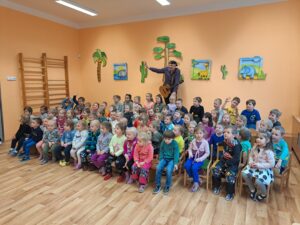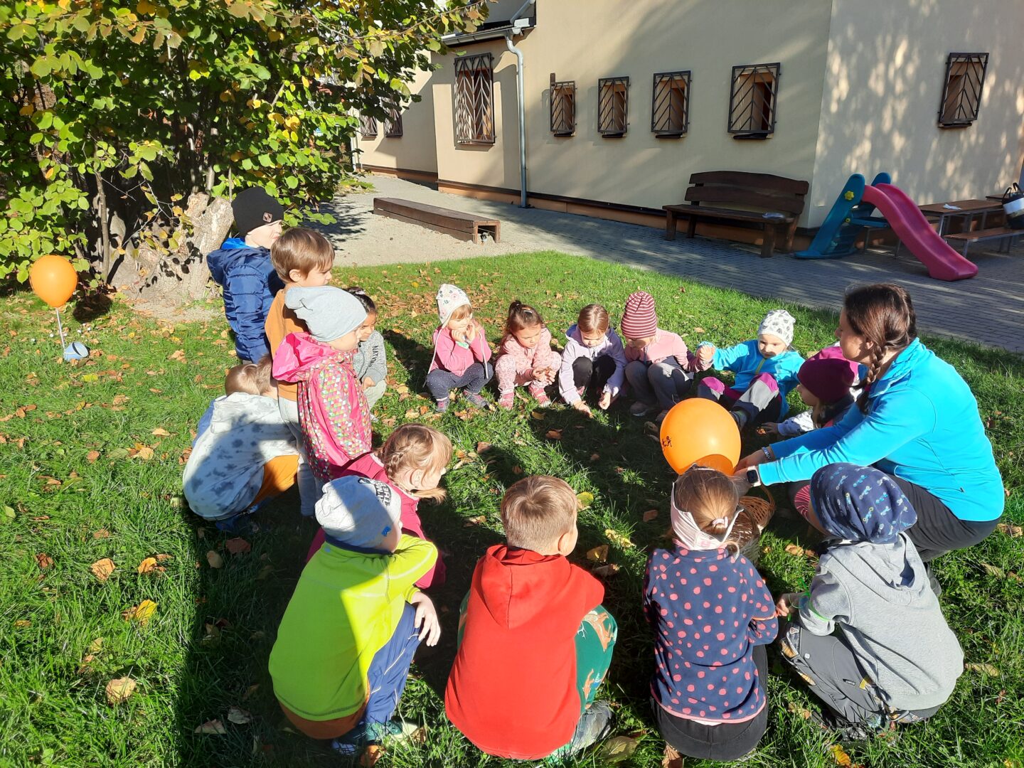 Nový školní rok jsme zahájili v naší MŠ prvním zářijovým divadélkem a vyprávěním příběhu o cvrčkovi, který se vrátil z cesty po světě a hledal na paloučku kamarády, kteří by hráli v jeho kapele. Byla to moucha Cecilka, housenka Mařenka a čmelák Brunda.