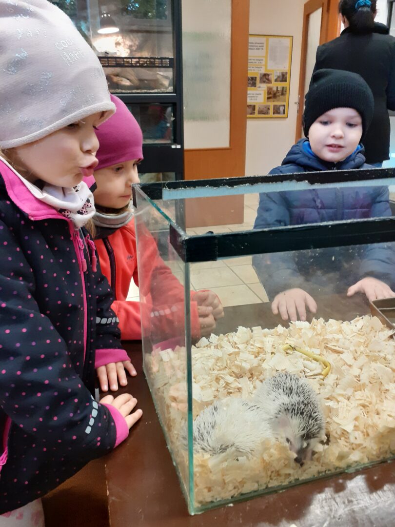 Shlédly výukový film „Život ježka“, porovnávaly rozdíly mezi ježkem východním a západním, seznámily se se způsobem života, s jídelníčkem, se zimním spánkem. Osobně si mohly „pohladit“ ježka východního a bělobřichého, účastnily se krmení. Také se seznámily s ochranou ježků v přírodě.