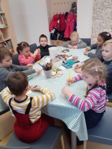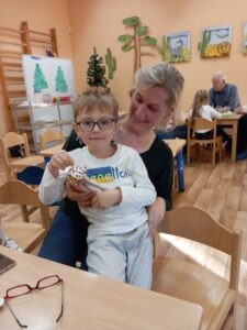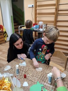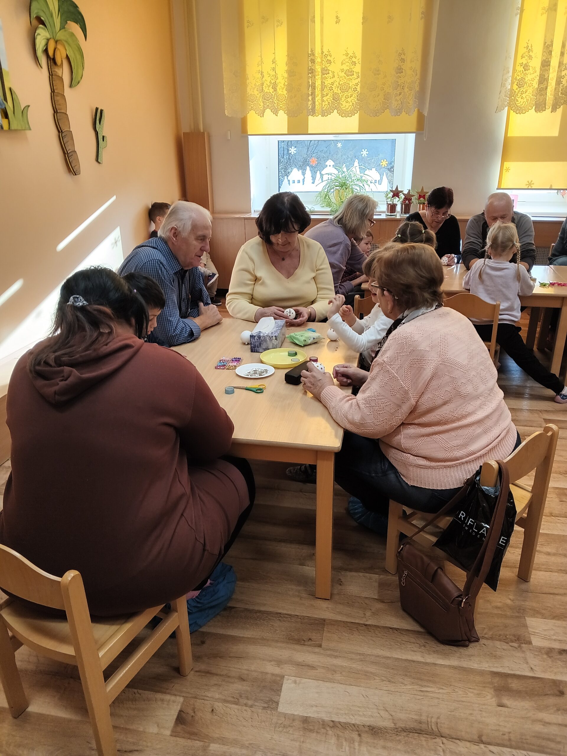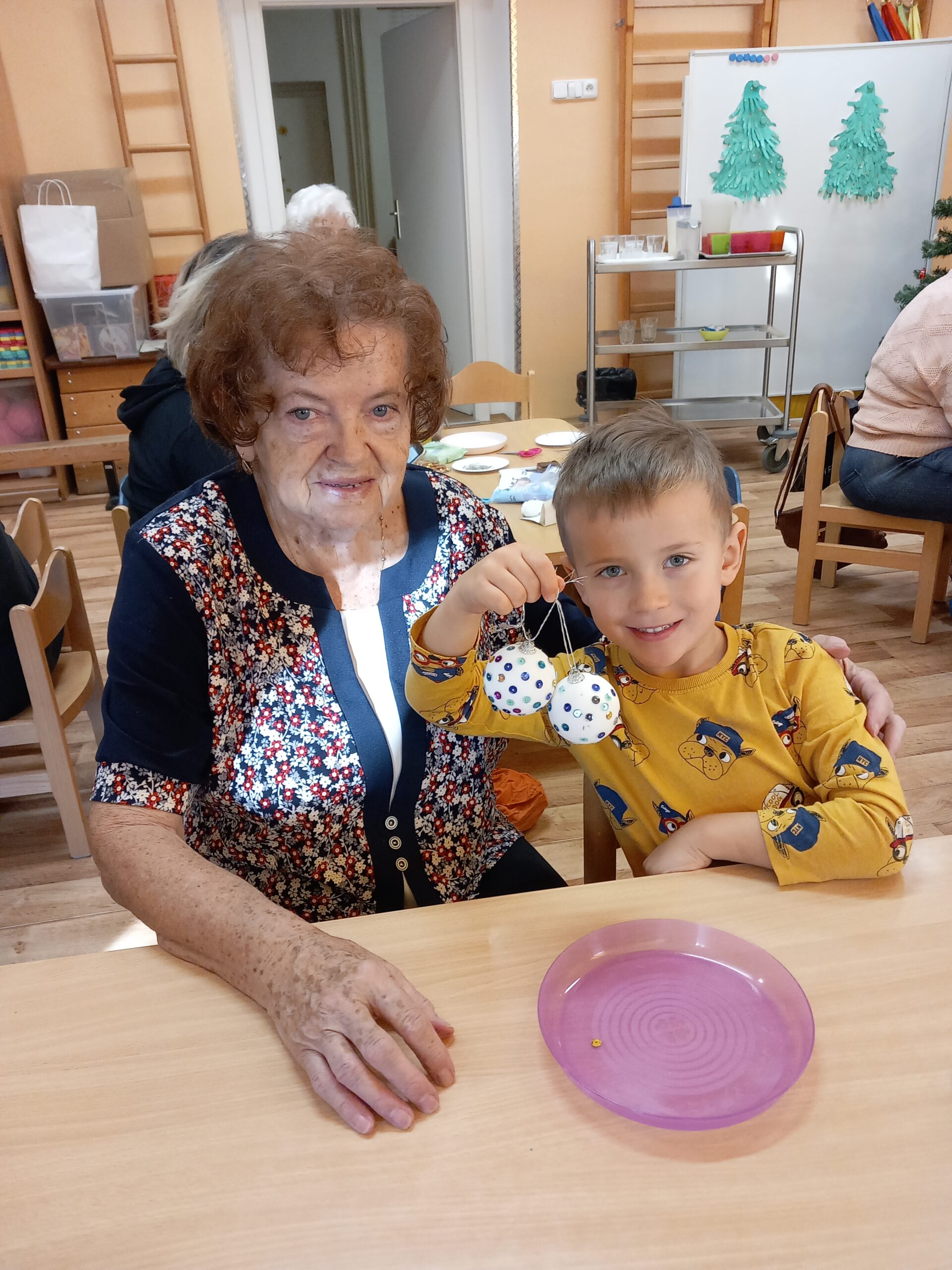 V dopoledních hodinách jsme v naší mateřské škole uspořádali krásnou akci, která spojila děti, seniory a místní komunitu – společné vyrábění vánočních ozdob. Pod vedením paní učitelek se tvořily ozdobné baňky dekorované třpytkami, což přineslo radost nejen dětem, ale i našim seniorům.