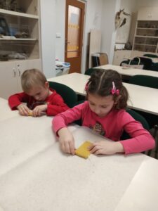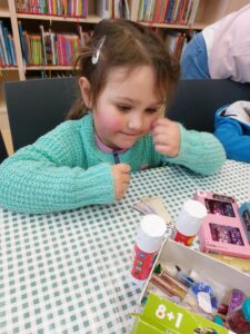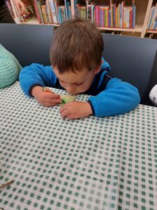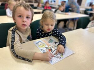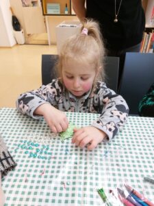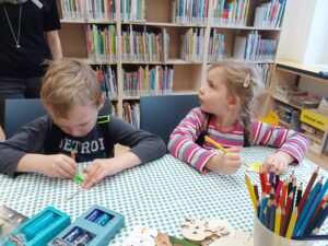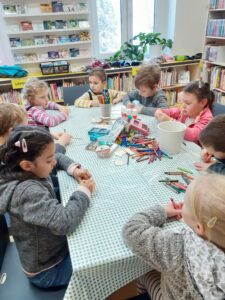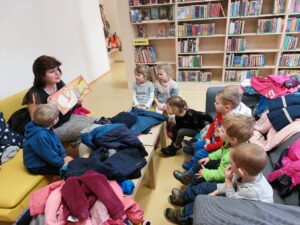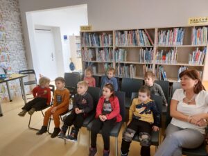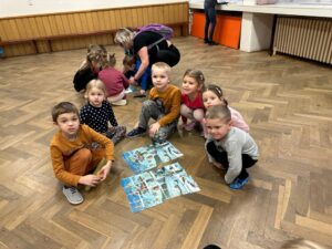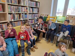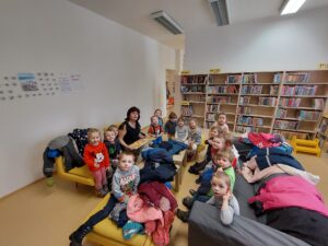 V úterý 11.2.2025 jsme s dětmi předškolní třídy navštívili knihovnu ve Svinově, kde byl připraven výukový program zaměřený na předčtenářskou gramotnost s názvem „Zubr si hledá hnízdo“. Děti se v rámci besedy seznámily s netradiční výtvarnou technikou roztírání plastelíny na papír. Na závěr si děti mohly prohlédnout knihy s dětskou tématikou.