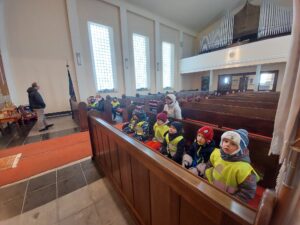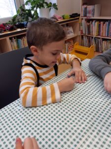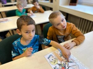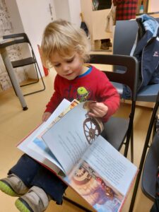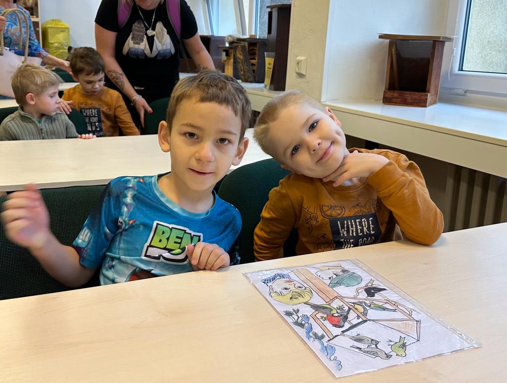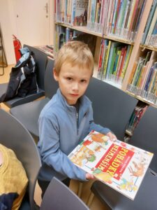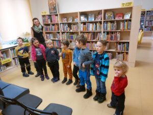 Dnes 14.10.2025 jsme s dětmi navštívili místní knihovnu, kde proběhla krásná akce s názvem „Podzim“. Paní knihovnice pro nás připravily zajímavé představení příběhu dvou chlapců, kteří na podzim pouštějí draky. Příběh děti zaujal a ukázal jim, jak si užít podzimní dny plné barev a zábavy.