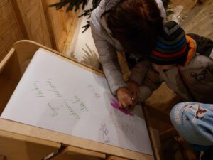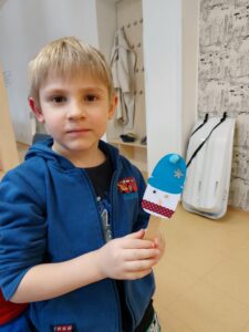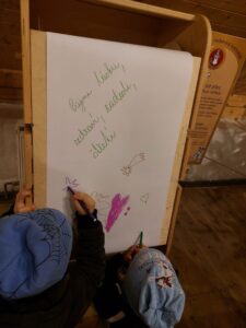 Součástí oslav byl i jeden speciální dárek paní majitelce. Děti společně nakreslily veselé panáčky, kteří budou vystavení ve vstupní hale jako symbolické poděkování paní majitelce Fun Golfu za nezapomenutelný den, který dětem přichystala.