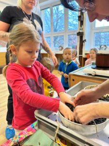 Zapojily se do sázení, pracovaly s hlínou a dodržovaly dostatečné rozestupy tak, aby si rostliny nepřekážely a mohly se dostatečně vyvinout.