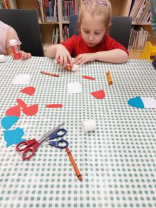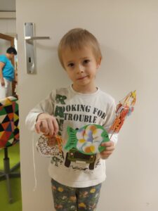 Na závěr si děti mohly vyrobit malého dráčka z papíru. Jednoduchá výroba spočívala v lepení krepových papírků a dokreslování detailů, takže si každý odnesl svého veselého dráčka jako připomínku dnešní akce.