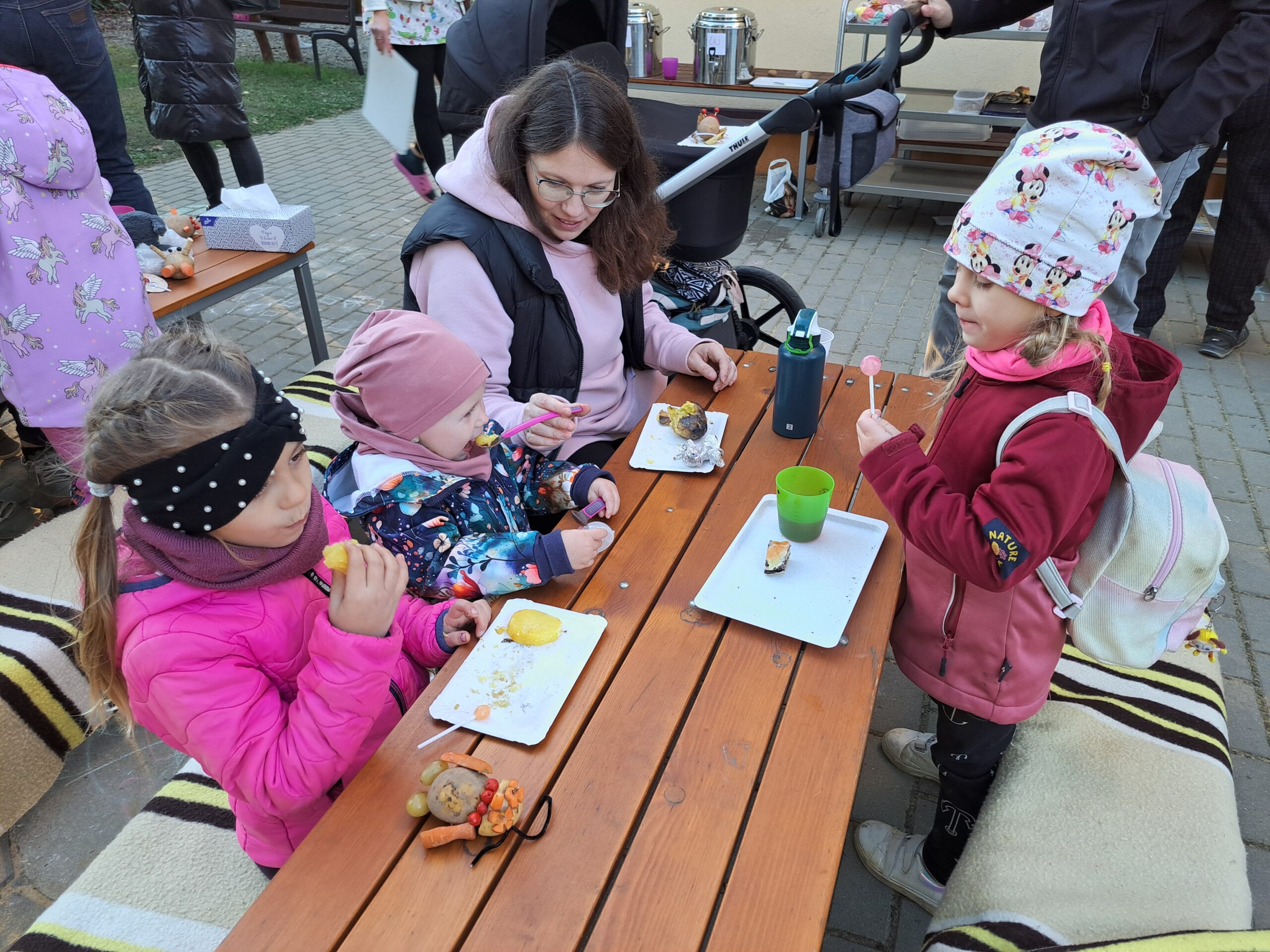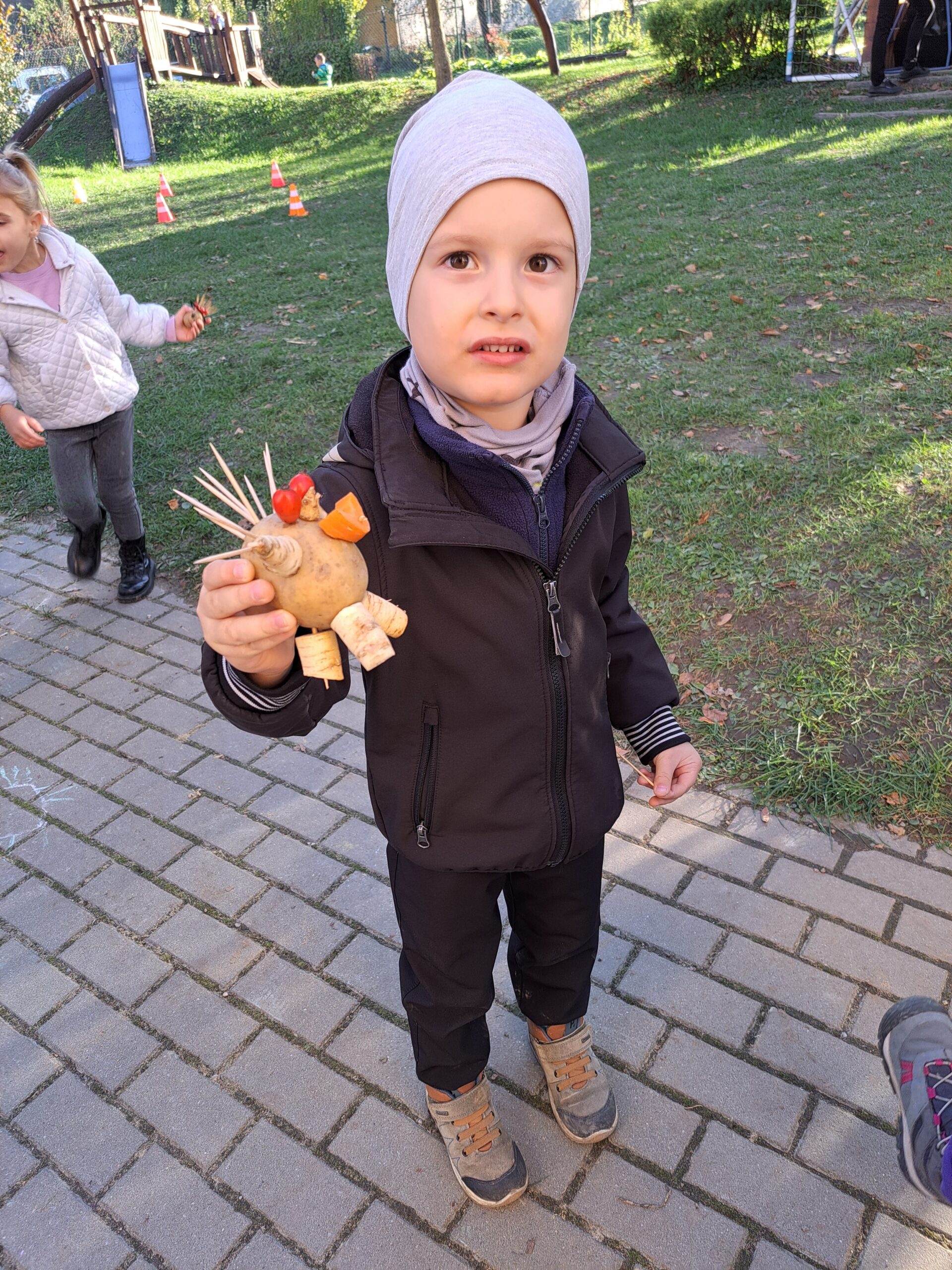 „Bramboriáda“ v MŠ, kterou jsme pořádali ve spolupráci rodičů a dětí dne 16.10.2024 byla plná zábavných aktivit. Zatím co rodiče soutěžili, kdo nejrychleji oškrábe brambory, děti si mohly vyzkoušet různé disciplíny zaměřené na rychlost a obratnost. Velkou výzvou byla i kreativní výroba panáčka z brambor. Odměnou pro děti bylo lízátko ve tvaru brombůrky. Rodiče se zapojili do tradičního, ale i nezvyklého pohoštění z brambor, a MŠ zajistila pitný režim. Celá akce byla úspěšná a přinesla radost dětem i dospělým.