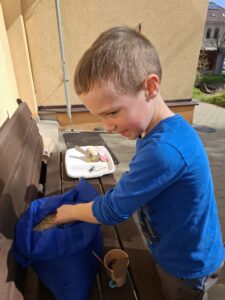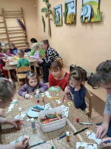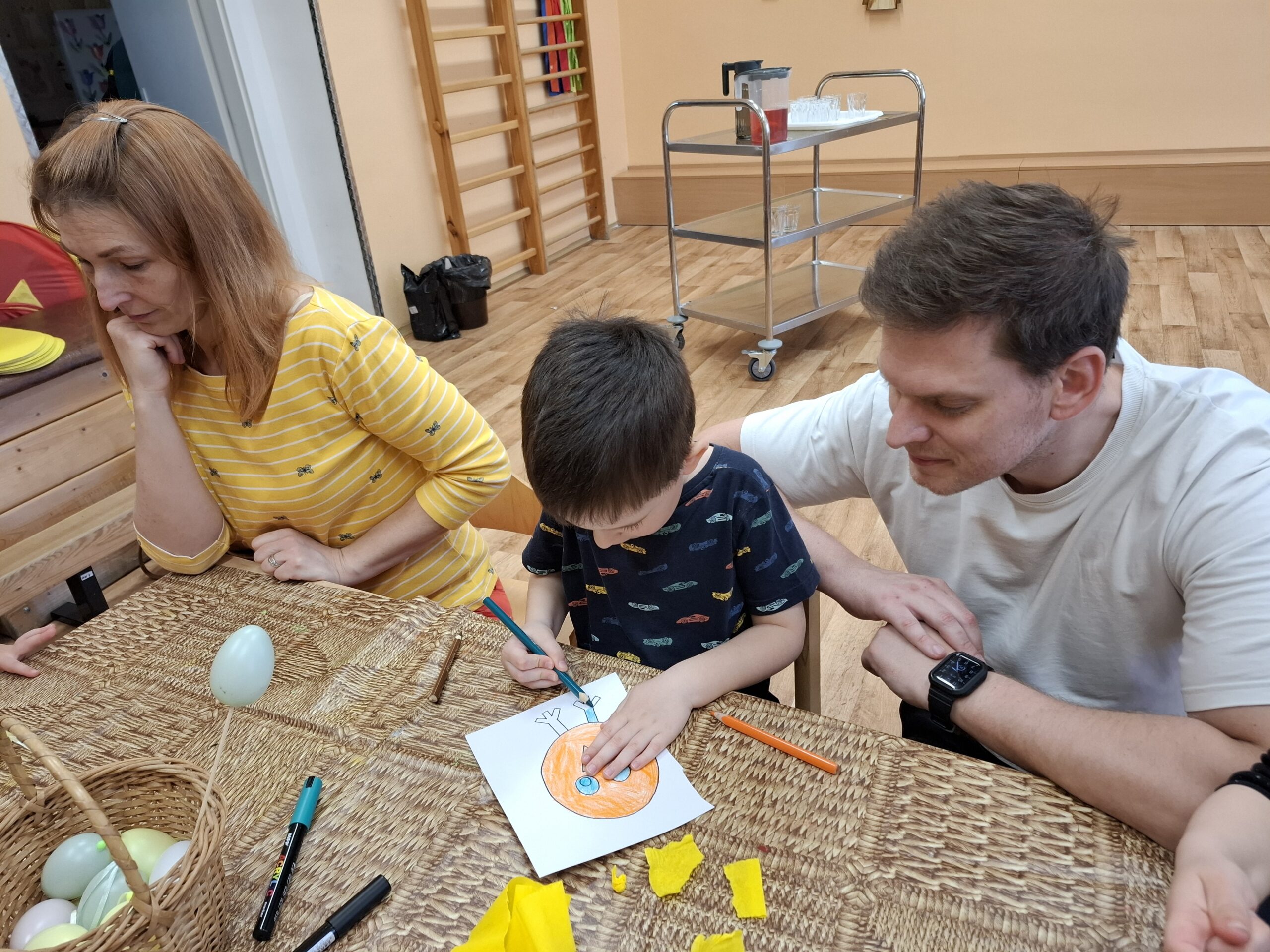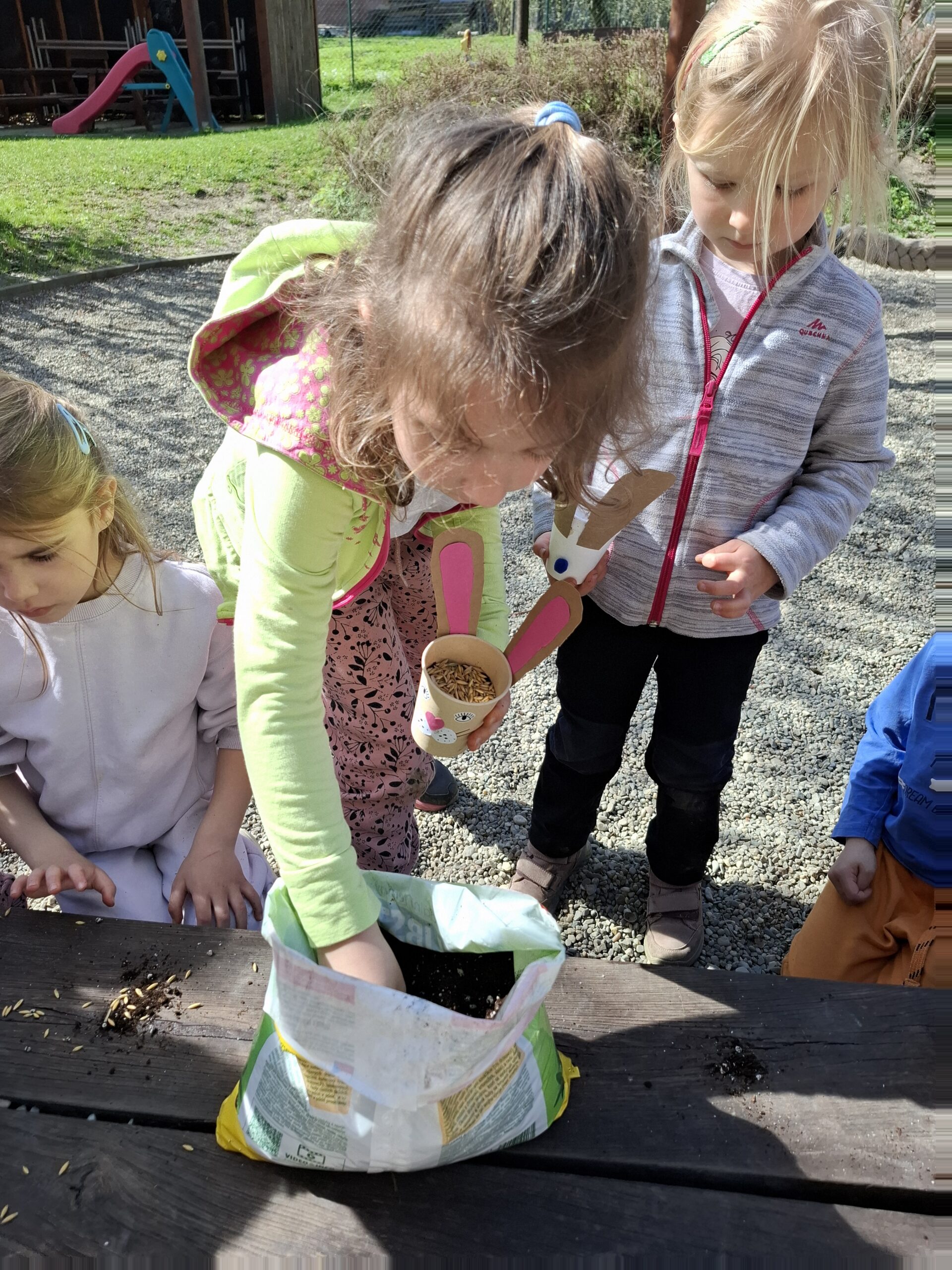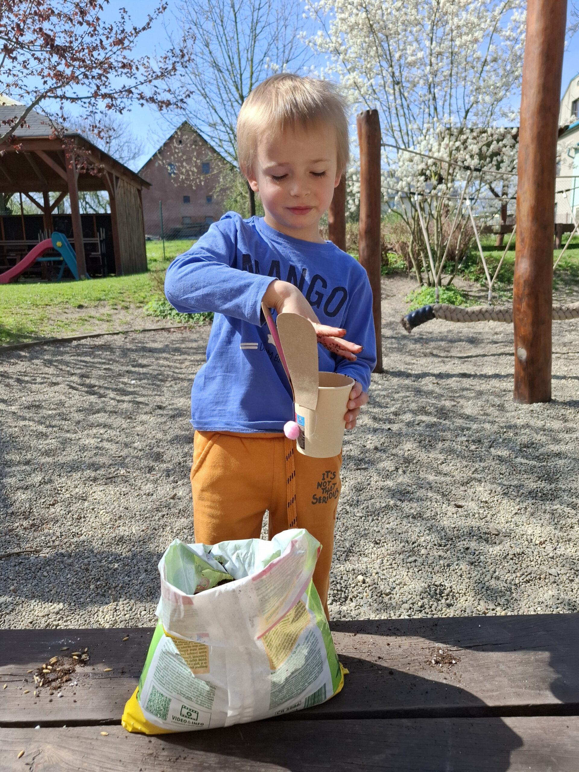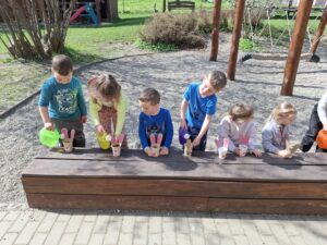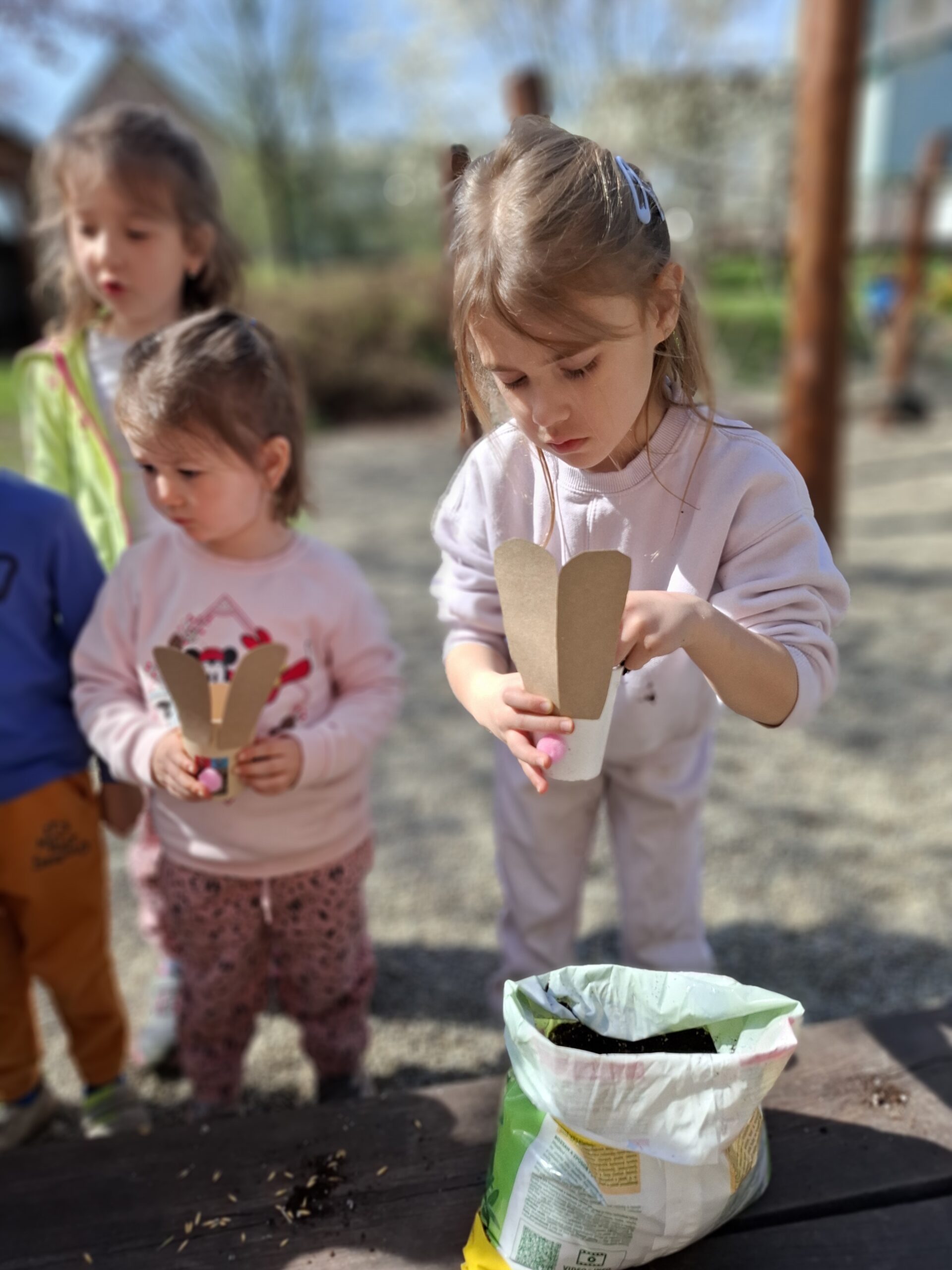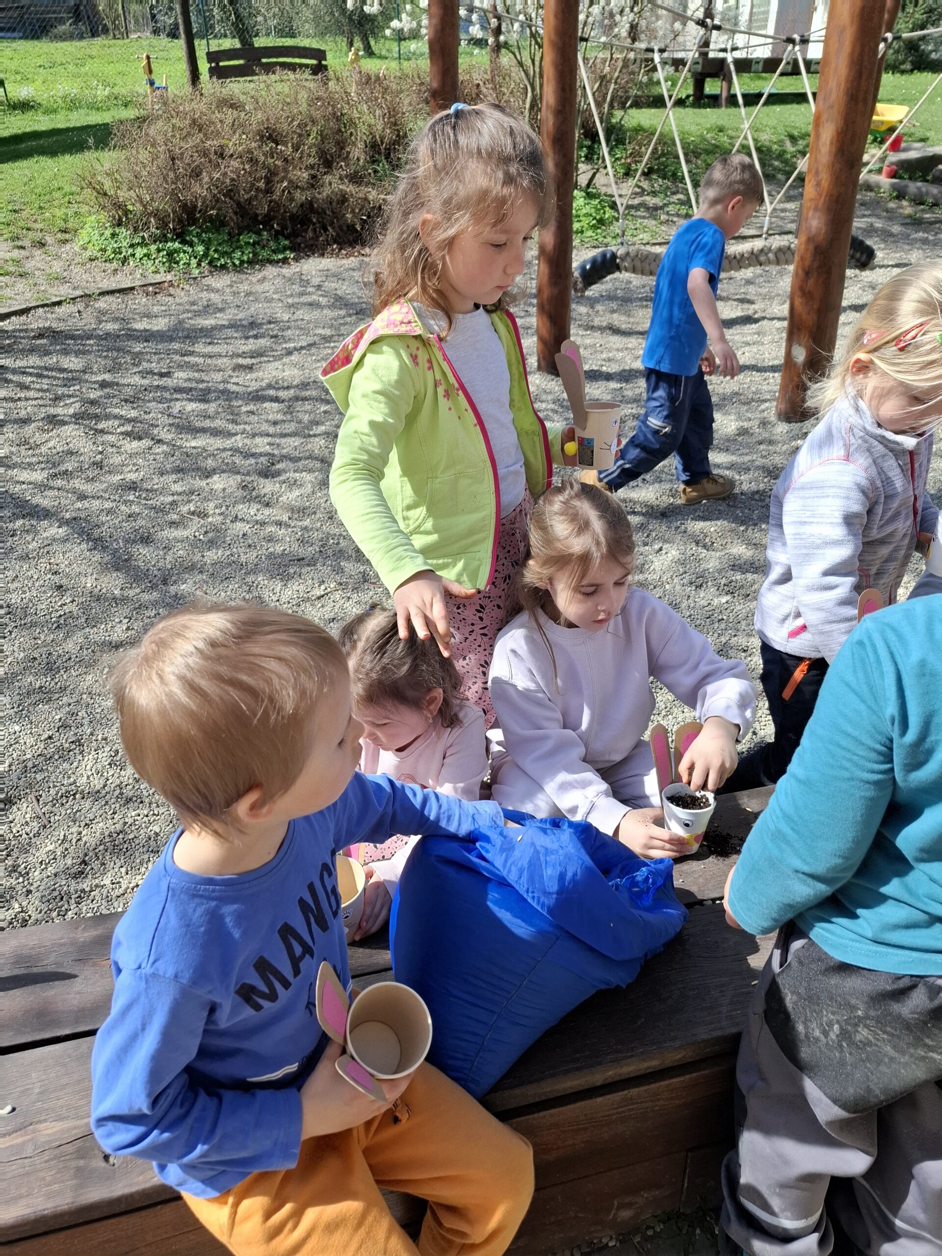 Dnes na modré pondělí jsme si s dětmi užili tvořivé dopoledne plné jarní nálady. Každý si vyrobil svého vlastního zajíčka z recyklovatelného kelímku od kávy, přilepili jsme ouška, očička, čumáček i ocásek. Ale tím to neskončilo. Do kelímku jsme zasadili ovesné zrní, které v následujících dnech vyklíčí a promění se v zelený porost. Až zrní vyroste, děti si svého zajíčka odnesou domů v podobě jarního květináčku, který jim bude dělat radost a připomínat společně strávený čas.