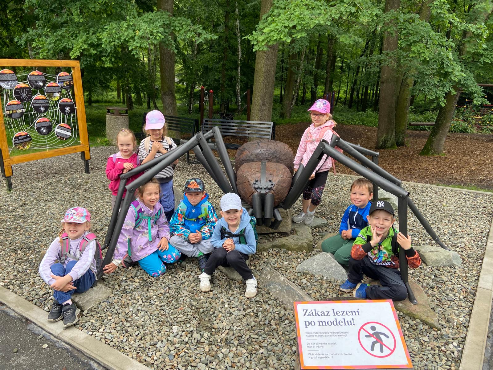 Začátkem června jsme se vydali do hotelu BRANS v Malé Morávce, kde jsme strávili pět dní plných zábavy. Téma našeho pobytu bylo více než hvězdné „Vesmír“. Společně jsme se tak na několik dní stali astronauty ve výcviku, kteří museli splnit celou řadu úkolů, než budou připraveni na let do neznáma. Každý den nás čekal zajímavý program – malovali jsme trička pro kosmonauty, zdolávali překážkové dráhy a také jsme si vyrobili vlastní raketu. Nechyběla ani návštěva lázeňské Karlové Studánky, kde jsme ochutnali místní teplé oplatky a pokochali se krásnou přírodou. Velkým zážitkem byla i večerní stezka odvahy, která se nesla v duchu „permoníků“, kteří v této oblasti těžili železnou rudu. Na úplný závěr nechybělo večerní zpívání u táboráku. Na památku si každý odnesl diplom za zvládnutí školky v přírodě, upomínkové předměty, ale hlavně spoustu krásných zážitků ze společně strávených chvil, na které budeme ještě dlouho vzpomínat.