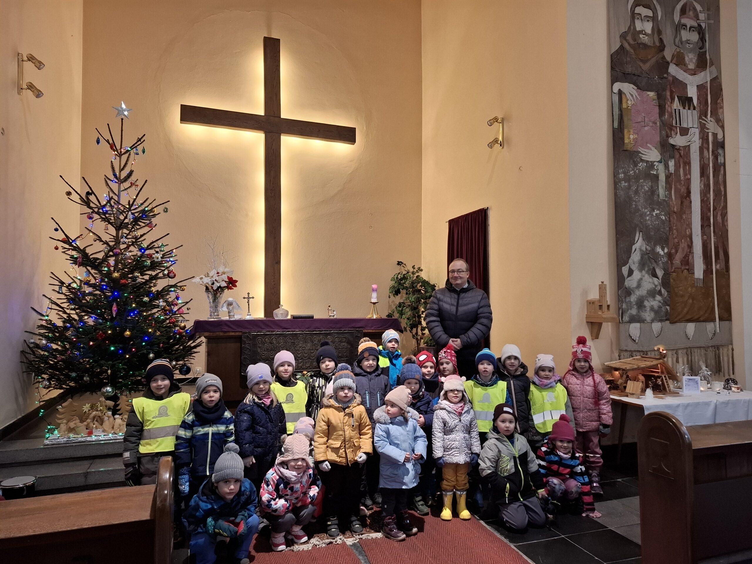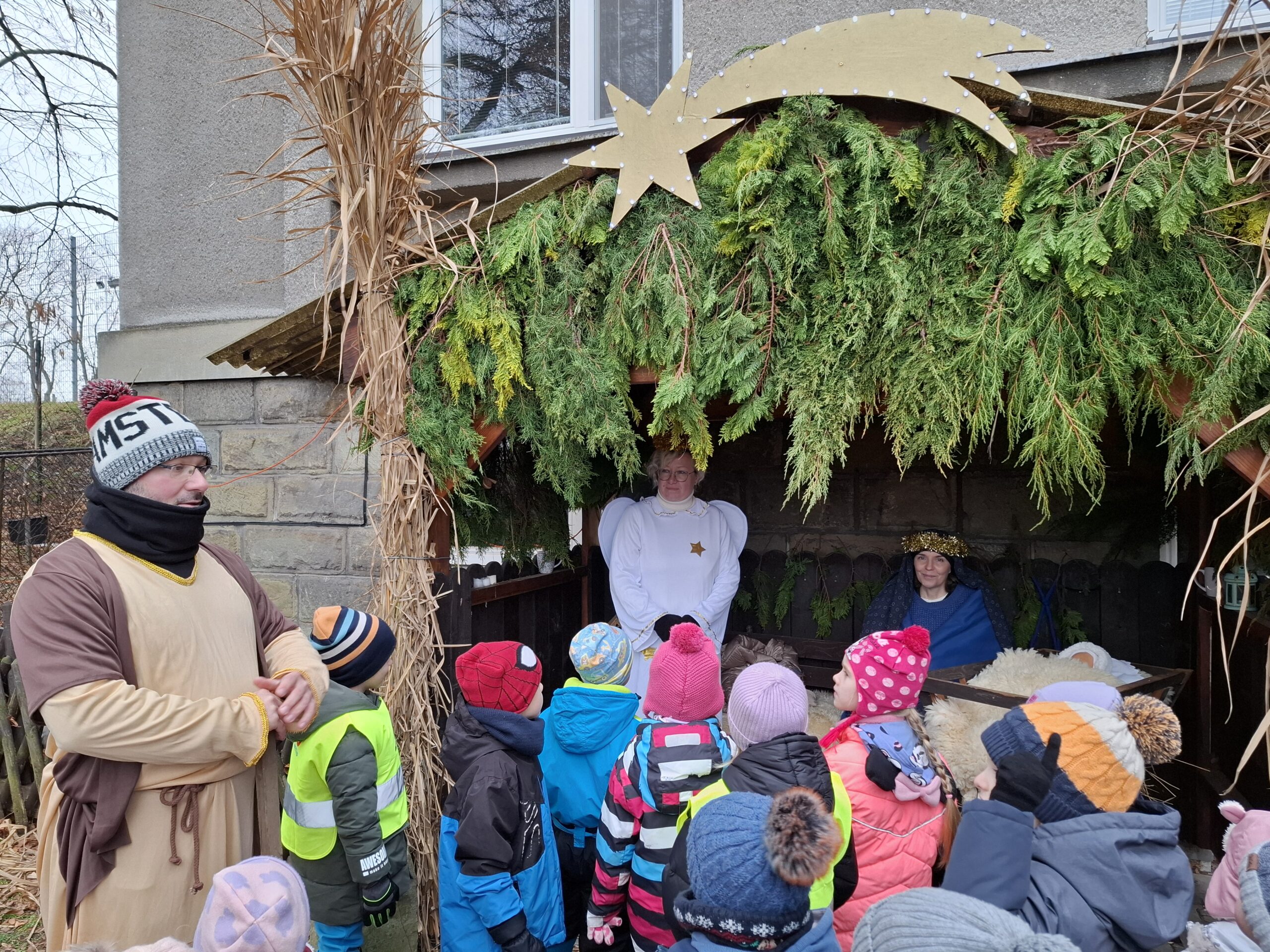 V předvánočním čase jsme se s dětmi z naší mateřské školy vydali na návštěvu Husova sboru ve Svinově, kde jsme měli možnost zhlédnout krásný živý betlém. Pro děti to byl výjimečný zážitek, který jim přiblížil vánoční příběh netradiční a velmi názornou formou. Už samotná návštěva kostela byla pro mnohé děti novou zkušeností. Se zájmem si prohlížely vnitřní prostor sboru a naslouchaly výkladu o významu Vánoc. Největší pozornost však samozřejmě patřila živému betlému, ve kterém vystupovali představitelé Marie, Josefa, Ježíška a anděla.