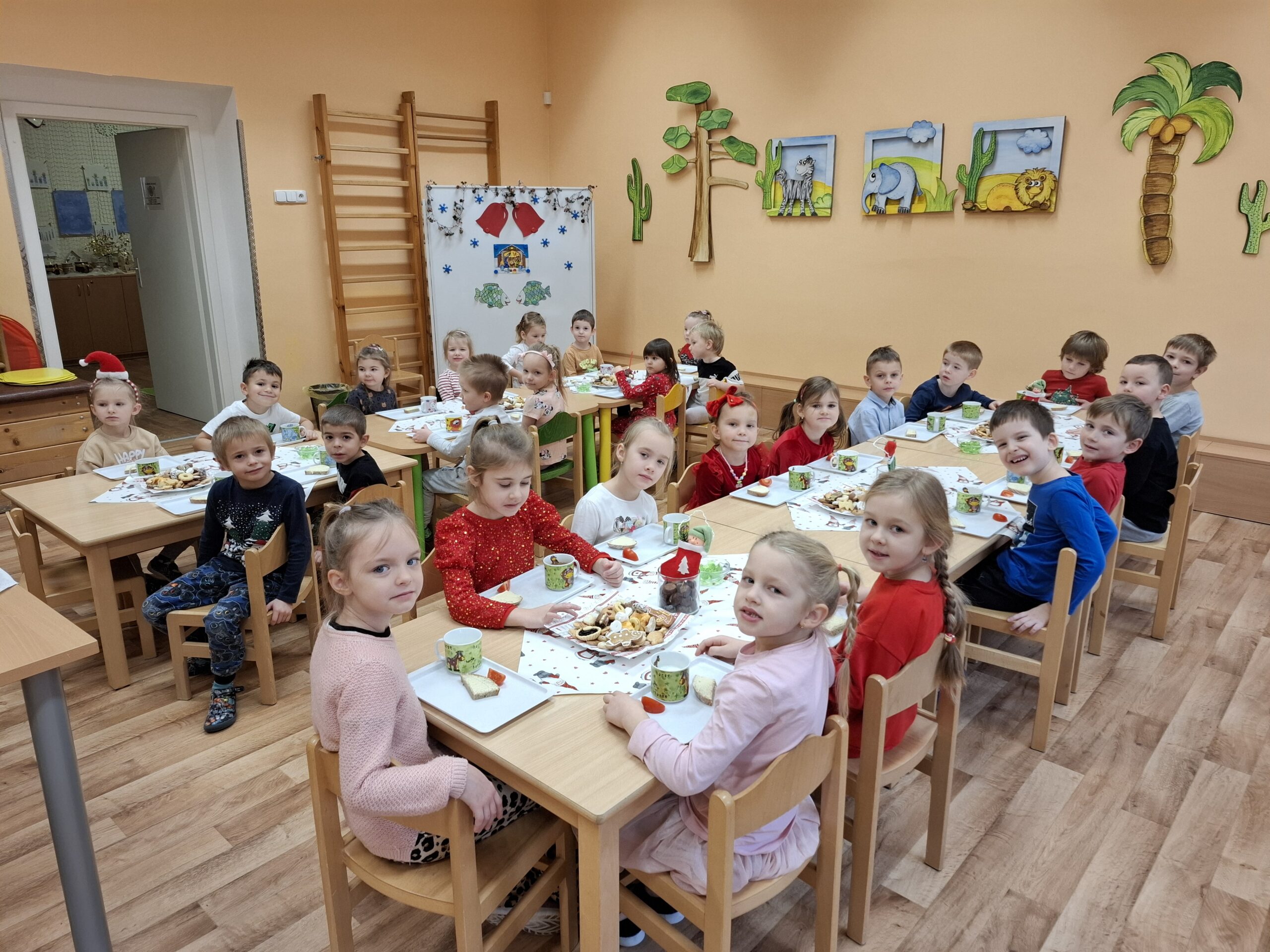 Vánoční dopoledne v naší mateřské škole se neslo ve slavnostní a radostné atmosféře. Společně s dětmi jsme připravili slavnostní tabuli, u které se setkaly obě třídy naší MŠ. Děti usedly k jednomu stolu, kde společně posvačily a poobědvaly, a užívaly si pocit sounáležitosti a vánoční pohody. Milou návštěvou nás poctila paní ředitelka, která dětem popřála klidné a veselé Vánoce. Zároveň je seznámila s některými vánočními zvyky a tradicemi. Děti jí za odměnu zazpívaly známé vánoční koledy. Největší radost však přišla ve chvíli, kdy zacinkal vánoční zvoneček. Děti si s nadšením rozbalovaly dárky a jejich radost byla nepřehlédnutelná. Celým dopolednem nás provázela vůně a chuť vánočního cukroví, které si děti přinesly z domova, aby jím pohostily své kamarády. Vánoční dopoledne jsme si všichni moc užili a odnesli si z něj krásné zážitky,