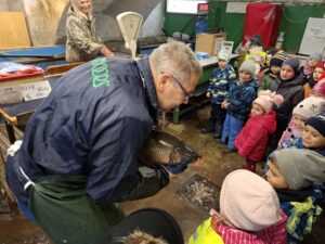 V předvánočním čase jsme s dětmi navštívili prodej kaprů ve Svinově. Děti si prohlédly sádky plné ryb a se zájmem sledovaly, jak se kapři nabírají do podběráku. Dozvěděly se, jak se s rybami správně zachází. Největším zážitkem pro děti bylo, když si mohly kapříka pohladit. Překvapilo je, jak je ryba na dotek kluzká a studená. Někteří se zpočátku trochu ostýchali, ale zvědavost nakonec zvítězila Návštěva byla pro všechny příjemným a poučným předvánočním zpestřením.