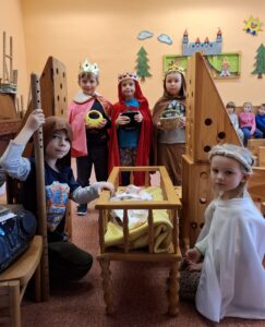 Společně s dětmi jsme připravili dramatické ztvárnění cesty Tří králů. Děti se aktivně zapojily do příprav, vžily se do svých rolí a s nadšením představily příběh putování za hvězdou. Celé vystoupení bylo radostným setkáním, které připomnělo tradiční poselství Tří králů a nabídlo prostor ke společnému prožitku a spolupráci