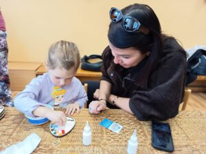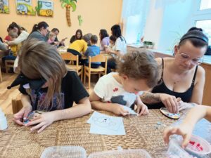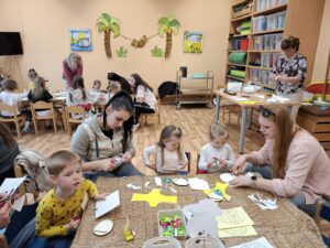 Pro všechny byly připraveny různé výtvarné aktivity s velikonoční tematikou. Největší úspěch sklidila výroba dřevěných vajíček zdobených barevnou mozaikou. Děti tato činnost velmi bavila a s nadšením skládaly jednotlivé dílky a vytvářely originální vzory, na které byly právem hrdé.