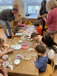 Velkou radost nám přineslo společné pečení jidášů. Děti si vyzkoušely práci s těstem, učily se trpělivosti a těšily se z vlastnoručně upečeného pečiva. Vůně linoucí se třídou navodila tu pravou sváteční atmosféru.