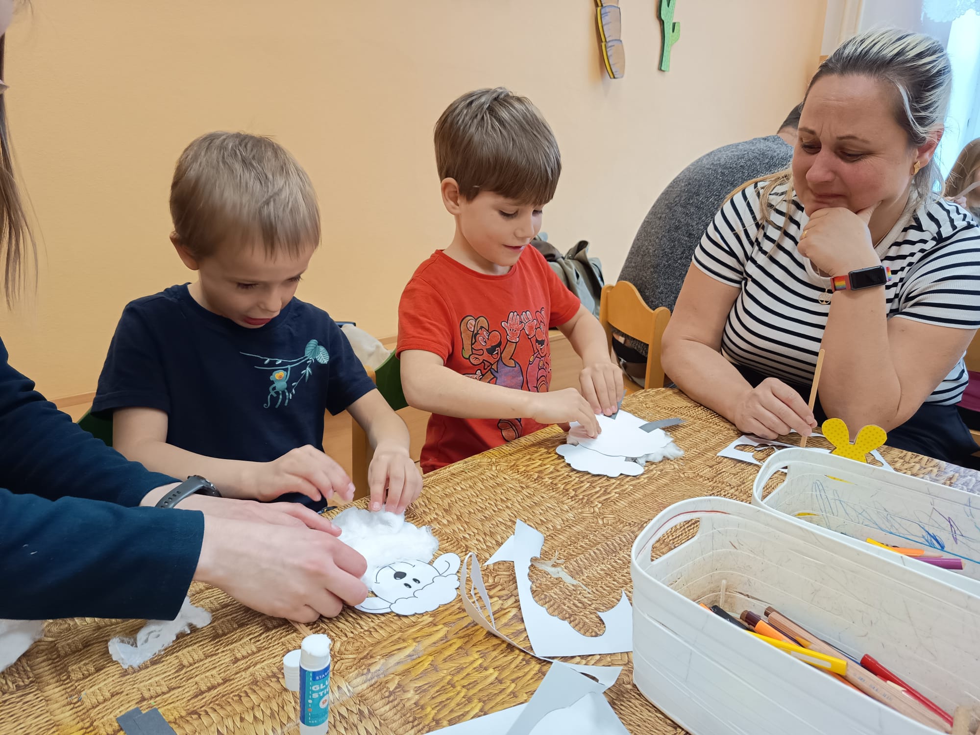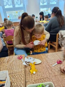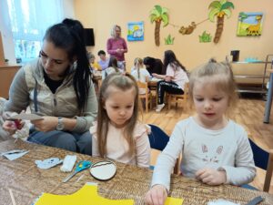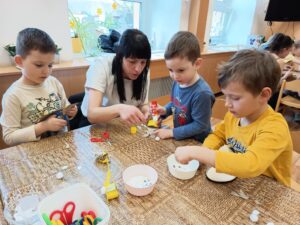 S dětmi jsme si nejprve povídali o tom, co Velikonoce znamenají. Přiblížili jsme si jednoduchou formou příběh o ukřižování a zmrtvýchvstání, aby děti pochopily duchovní rozměr těchto svátků.