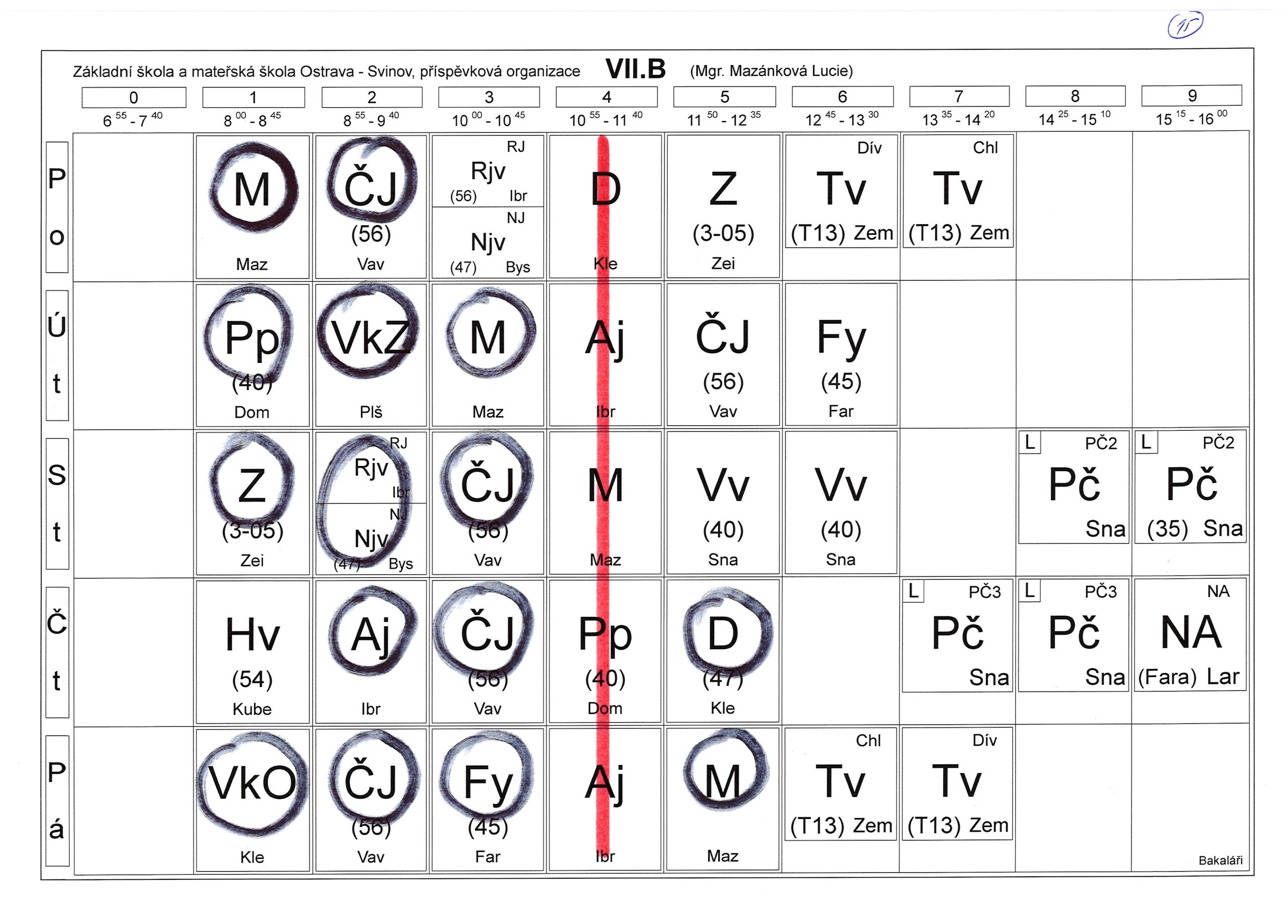 Rozvrhy distanční výuky platné od 3. 11. 2020 až do odvolání.