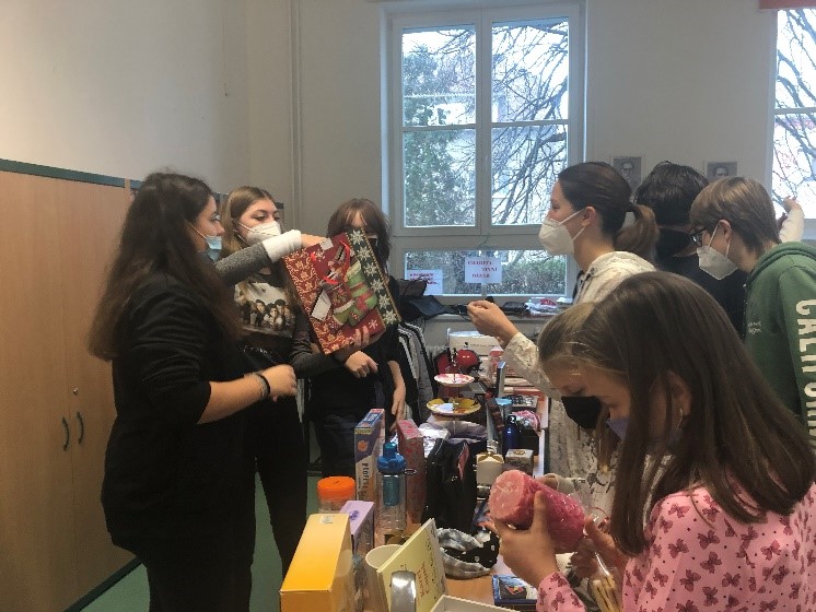 V rámci školního vánočního jarmarku členové parlamentu připravili charitativní bazar kabelek.