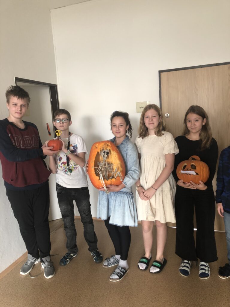 U příležitosti letošního svátku Halloween jsme uspořádali soutěž o nejzajímavější dýni. Vyhodnotili a odměnili jsme nejlepší tři kreativní nápady. Nejvíce se všem líbila dýně žáků 6. B třídy, která byla opravdu originální.