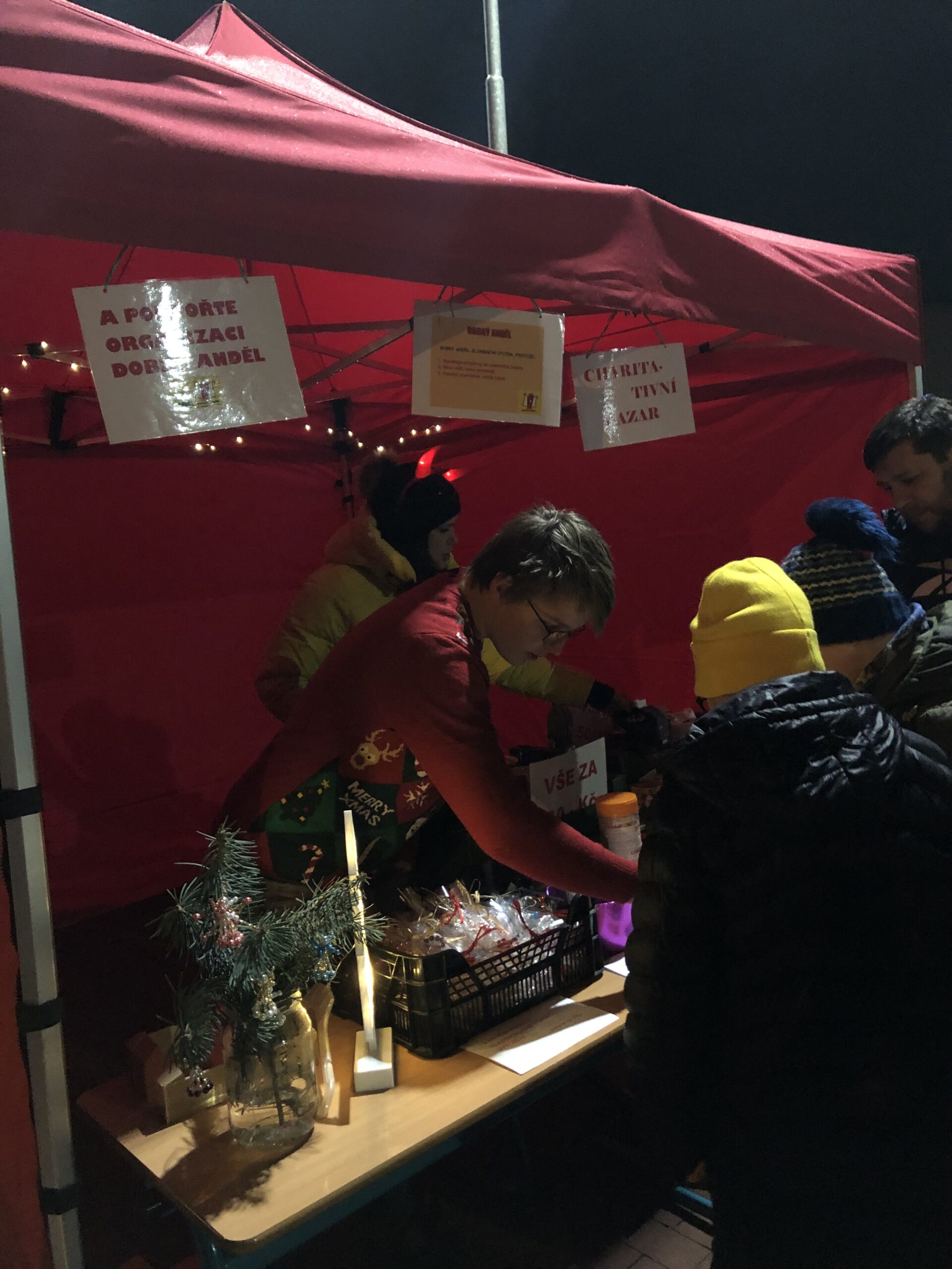 V rámci našeho školního vánočního jarmarku jsme opět prodávali ve stánku na podporu charitativní organizace Dobrý anděl. Letos jsme ve spolupráci se žáky z rukodělného kroužku prodávali látkové tašky a polštářky, o které byl velký zájem. Uspořádali jsme taky sbírku pěkných nevyužitých hrníčků, které zcela jistě potěšily své nové majitele. Pěkným dárečkem byly také naše levandulové svíčky. Ve spolupráci s nepedagogickými pracovníky naší školy, kteří nabídli občerstvení jsme opět vybrali a odeslali 10 000 korun.