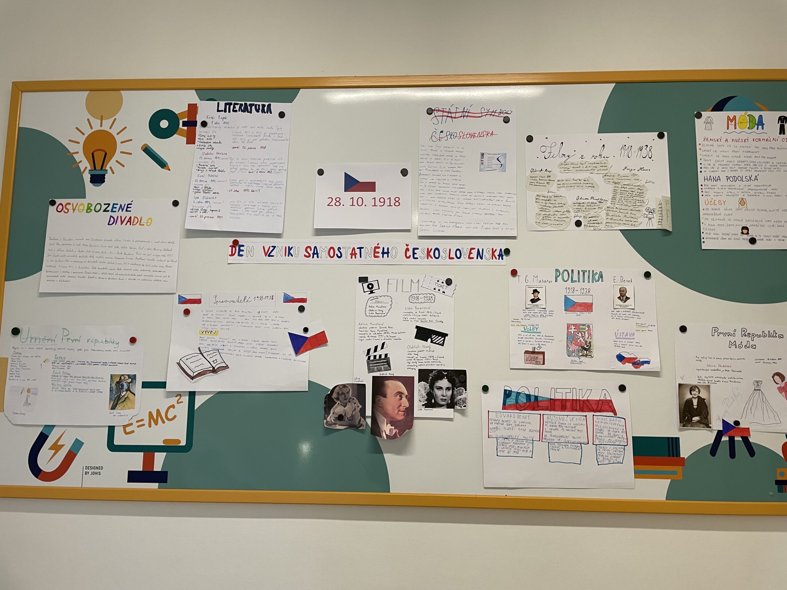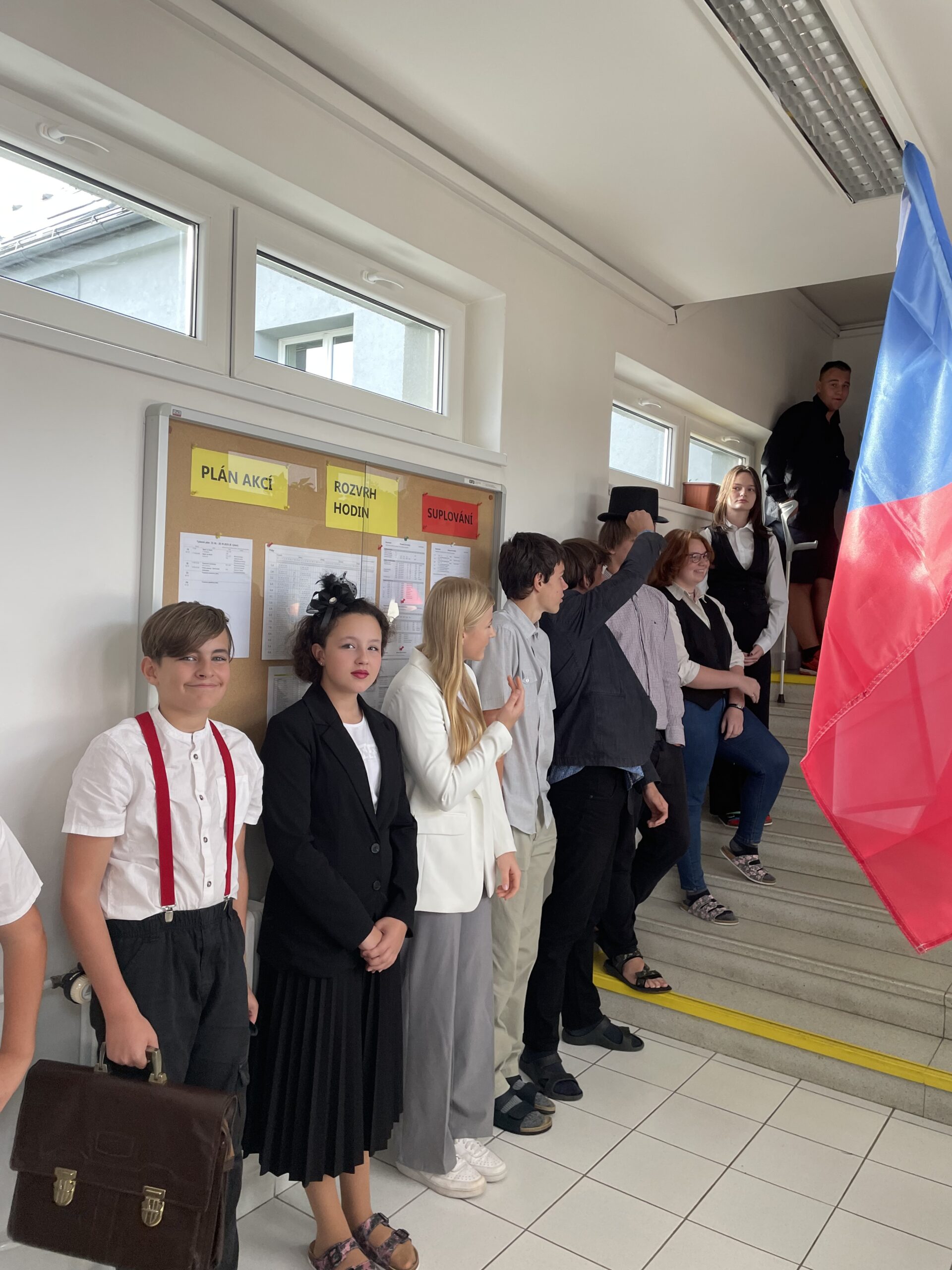 Letos jsme oslavili významné 105. výročí založení samostatného Československa. Při této příležitosti jsme se v rámci vyhlášeného Dne elegance slavnostně oblékli. Třídy jsme vyzdobili československou vlajkou a sedmé ročníky vypracovaly projekt, ve kterém přiblížily významné osobnosti a události z období první republiky. V devátém ročníku jsme zpracování informací vyhodnotili a použili v hodině dějepisu k zopakování učiva.