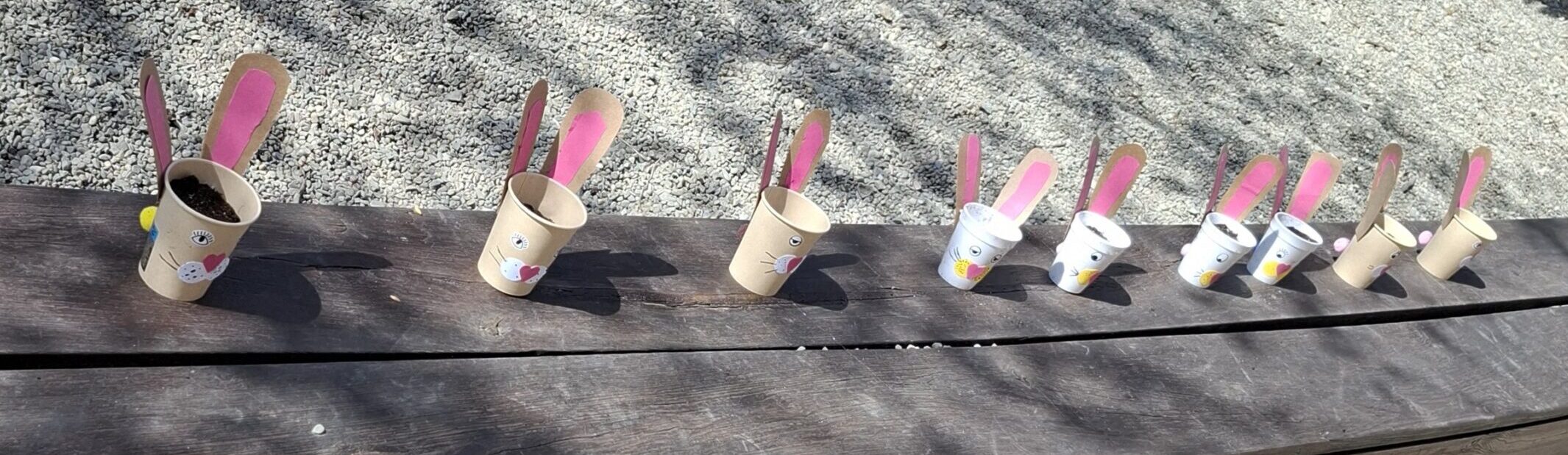 Dnes na modré pondělí jsme si s dětmi užili tvořivé dopoledne plné jarní nálady. Každý si vyrobil svého vlastního zajíčka z recyklovatelného kelímku od kávy, přilepili jsme ouška, očička, čumáček i ocásek. Ale tím to neskončilo. Do kelímku jsme zasadili ovesné zrní, které v následujících dnech vyklíčí a promění se v zelený porost. Až zrní vyroste, děti si svého zajíčka odnesou domů v podobě jarního květináčku, který jim bude dělat radost a připomínat společně strávený čas.